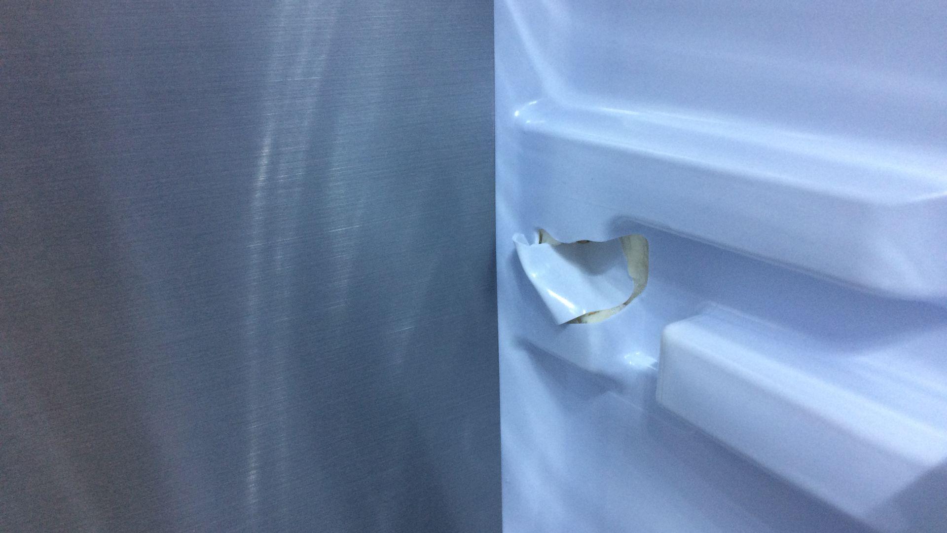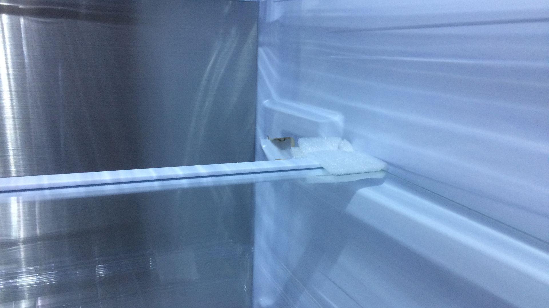 Привезли с 5ю дырками от полок в задней стенке! Стеклянные полки закреплены хорошо, проложены пенкой однако имеют острые углы, которые при транспортировке (особенно если уронить на "спину") пробивают и коробят очень тонкий пластик внутренней облицовки.