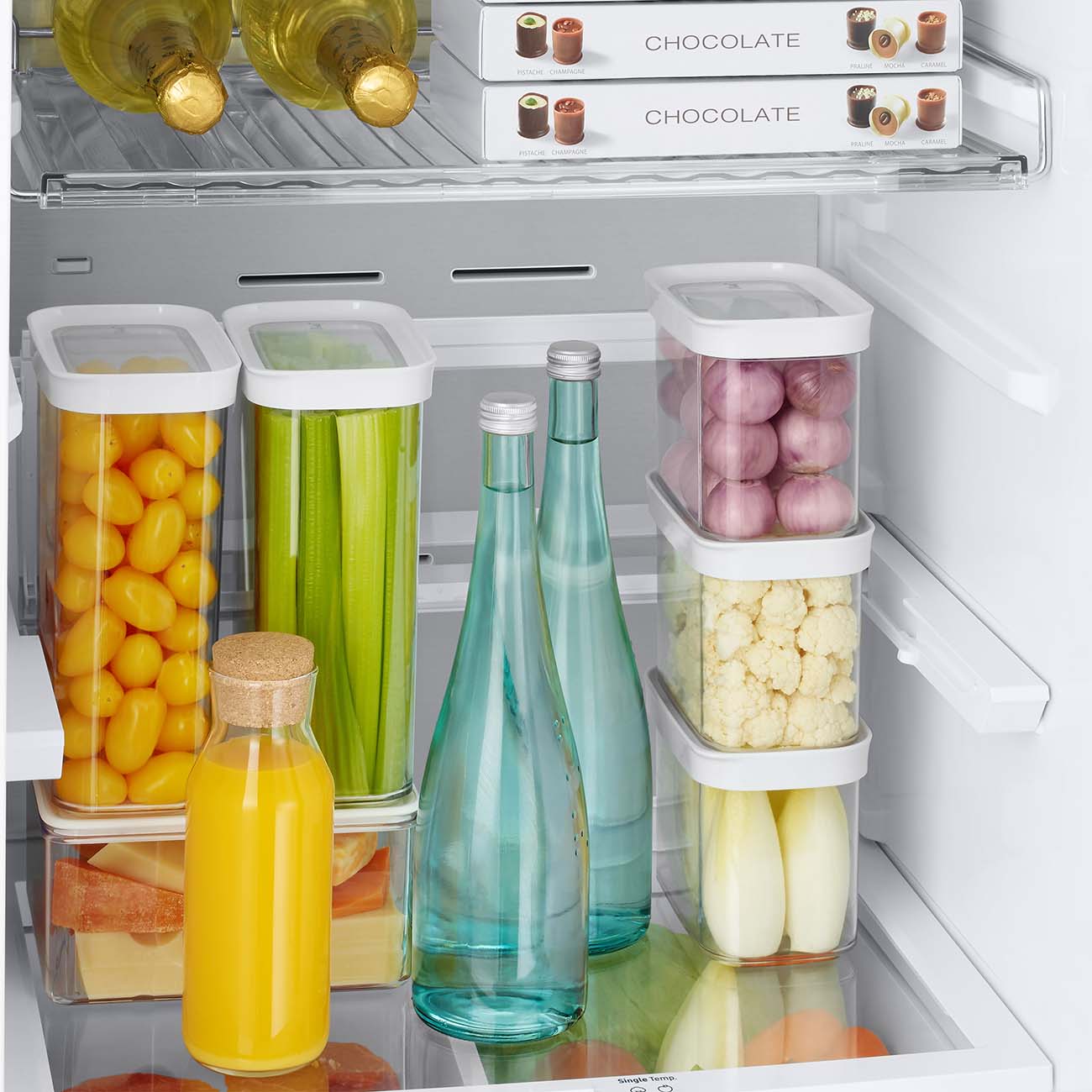 Холодильник Samsung RB38A7B6235 входит в коллекцию Bespoke. Вы можете устанавливать его рядом с другими модулями, а также менять декоративные панели, отличающиеся цветами, материалами и фактурой. Это позволяет гармонично вписывать его в дизайнерский интерьер кухни или квартиры-студии.
