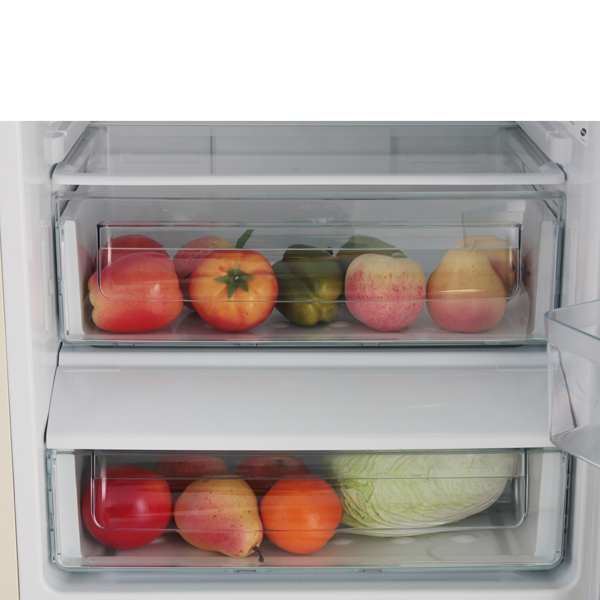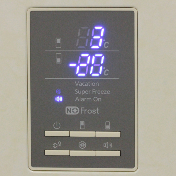 Вот уже более полугода этот холодильник радует нас своим присутствием на нашей кухне. Выбирали не очень высокий, так как мы с женой не очень большого роста, а вот 188 см оказалось в самый раз. Изначальными критериями для выбора техники были функция No Frost, габариты, нижнее расположение морозильной камеры, индикация температуры на дисплее, и внешний вид, ну и конечно же марка Samsung. У нас и микроволновка этой фирмы и стиральная машина, так что кухонной технике от этого производителя мы доверяем. С тех пор как используем этот холодильник нахождение на кухне и сама его эксплуатация оставляет только приятные впечатления. Функция No Frost с возможностью быстрой заморозки работает идеально - используем при необходимости быстрого охлаждения напитков. Есть функция отпуск с раздельным установлением температуры по камерам - отличная штука когда едешь в отпуск. Места в нем много, хоть и не 2 метра, хватает для всего, а если кому нужно больше можно вытащить ящик из зоны свежести и вуаля еще одна полочка. Вообще на кухне приятно смотрится холодильник в бежевом с синей диодной подсветкой, а когда его открываешь то радуют уже диоды внутренней подсветки. Кстати пришлось перенавесить дверцу - справился один за час. Вообще холодильник классный, но а недостатки есть у всего. Здесь это отсутствие звуковой индикации открытой дверцы, хотя это и заявлено, и отсутствие в морозильной камере полочки для заморозки льда.