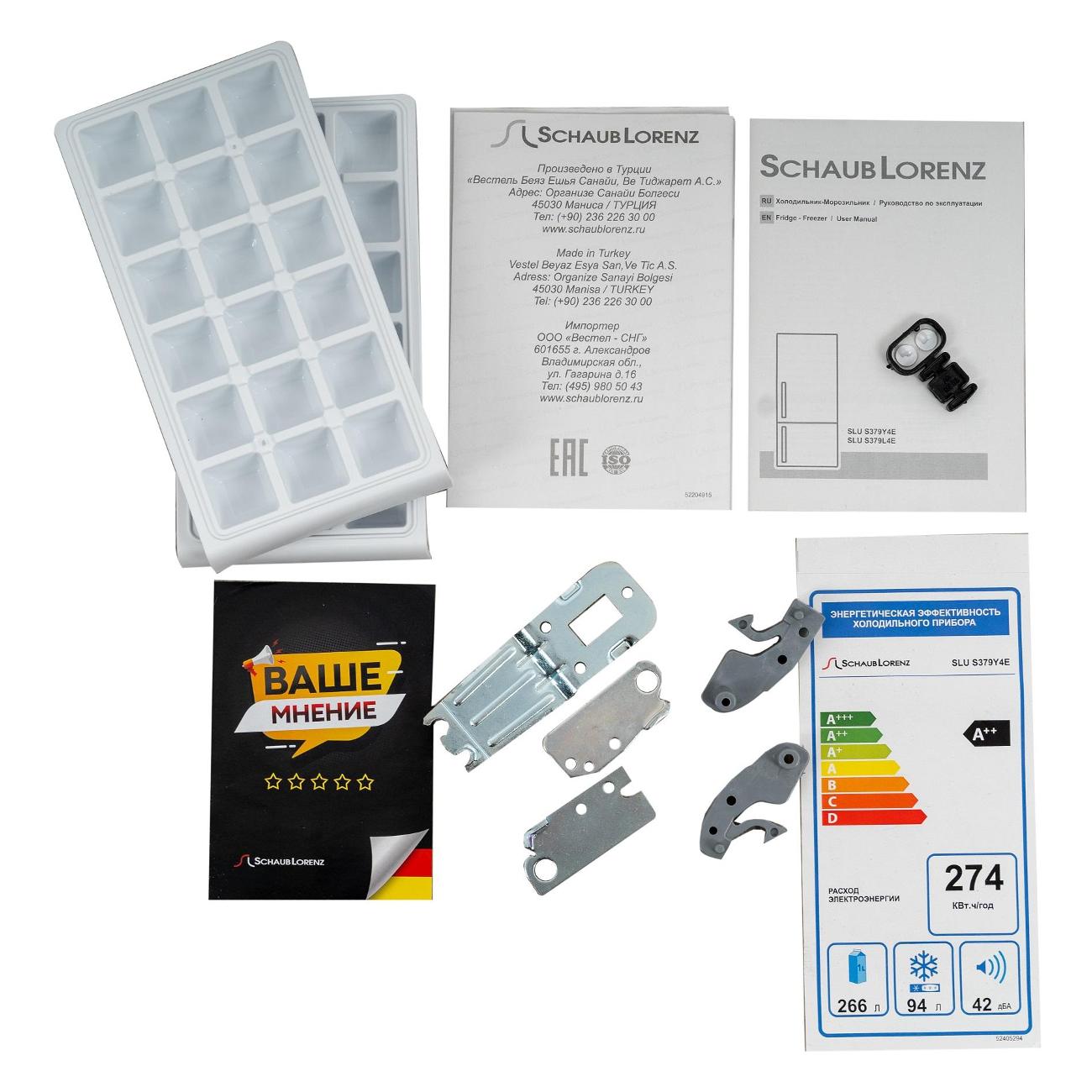 Холодильник Schaub Lorenz SLU S379Y4E — модель с габаритами 201х59,5х65 см, весом 78 кг. Климатический класс — T, SN. Уровень шума во время эксплуатации не превышает 42 дБ. Общий объем камеры равен 379 л, из которой 360 л отводится на полезное пространство. Дверь выполнена из эмалированного металла. Основная камера (275 л) включает в себя четыре полки из закаленного стекла, складную, позволяющую разместить высокую посуду, для бутылок, отделение для овощей и фруктов, четыре пластиковых балкона, находящихся на двери. Светодиодное освещение дает возможность хорошо видеть пространство в темное время суток. Сухая зона свежести с прозрачным ящиком из пластика предназначена для долгого хранения овощей и фруктов.