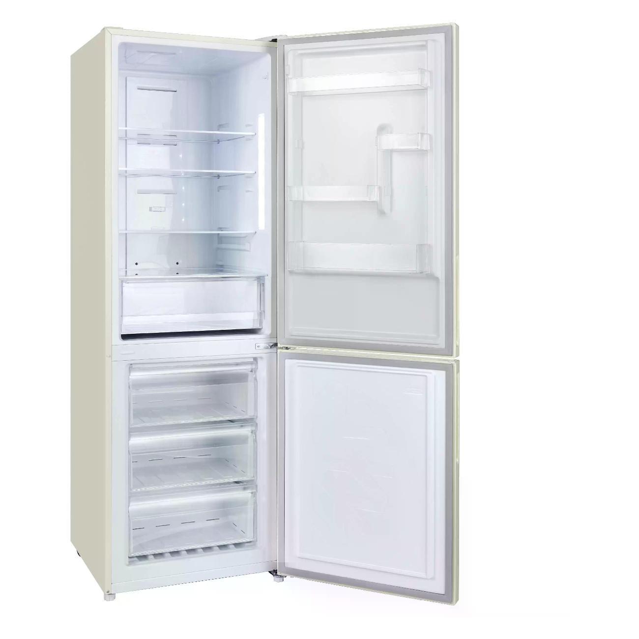 Красивый бежевый цвет, отлично вписался в интерьер нашей кухни. По качеству холодильник прекрасный, продуктов много вмещает, морозильная камера имеет 3 ящика, отлично морозит. Управление производится при помощи сенсорного дисплея, звуковой сигнал оповещает если дверь не закрыли.