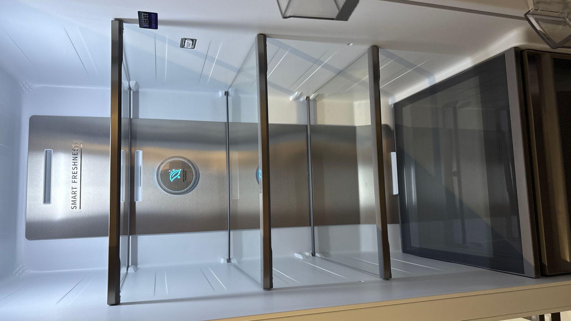 Первое, что привлекает внимание - это его изысканный цвет и премиальное покрытие дверцы. Материал не только выглядит стильно, но и практичен в уходе - никаких отпечатков пальцев и загрязнений, все легко очищается. Но главное - это функциональность холодильника. Охлаждение работает безупречно: продукты быстро достигают нужной температуры и надолго сохраняют свежесть.