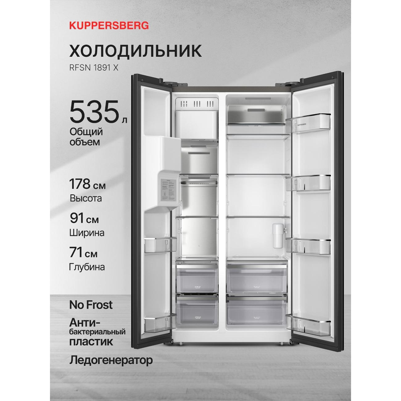 Вы можете купить Холодильник (Side-by-Side) Kuppersberg RFSN 1891 X в магазинах М.Видео по доступной цене. Холодильник (Side-by-Side) Kuppersberg RFSN 1891 X: подробное описание, фото и отзывы реальных покупателей, характеристики, возможность скачать инструкции и подобрать аксессуары.