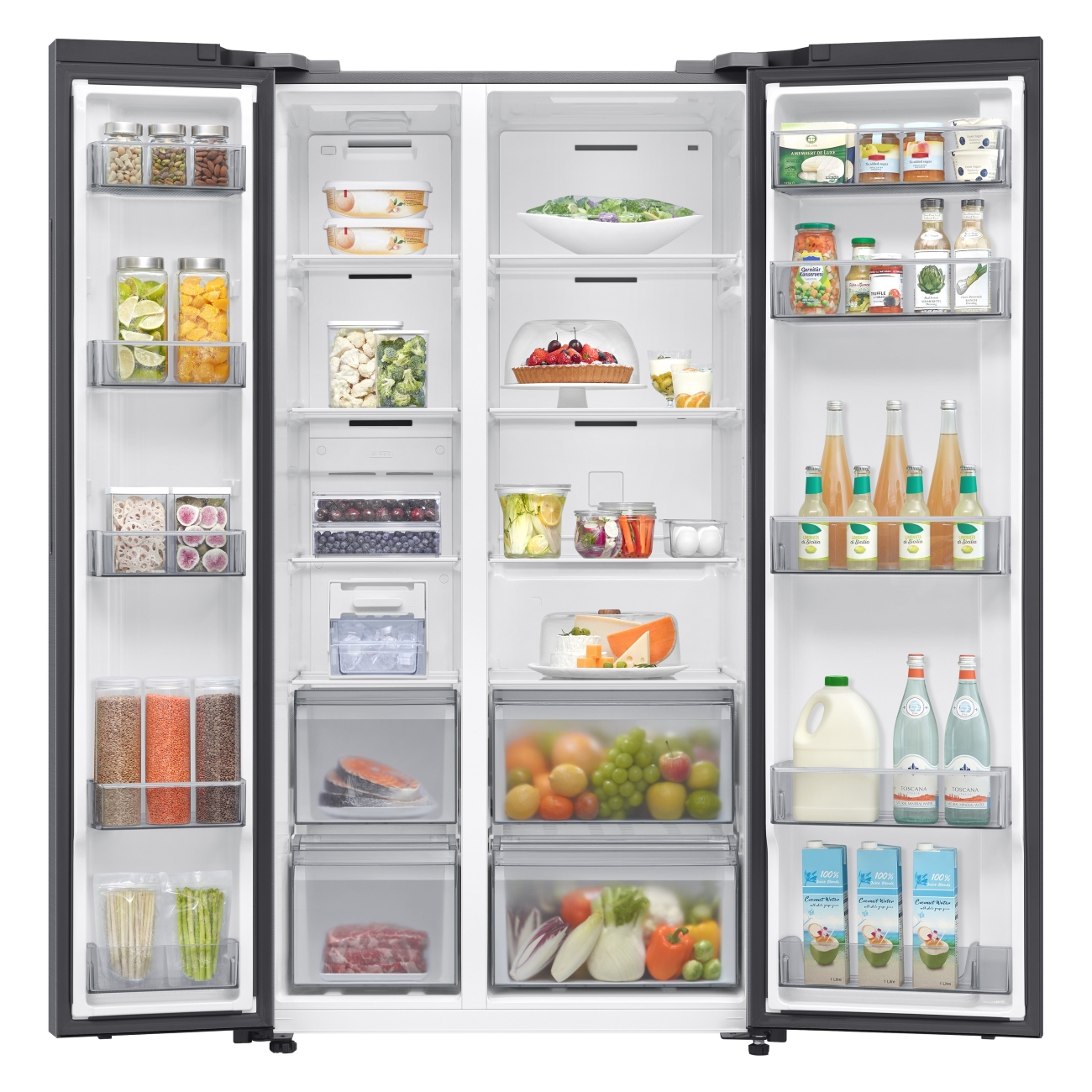 Холодильник (Side-by-Side) Samsung RS70F65Q1TWR серии RS5000 общим объемом 680 л выполнен в габаритных размерах 178х91,2х71,6 см.