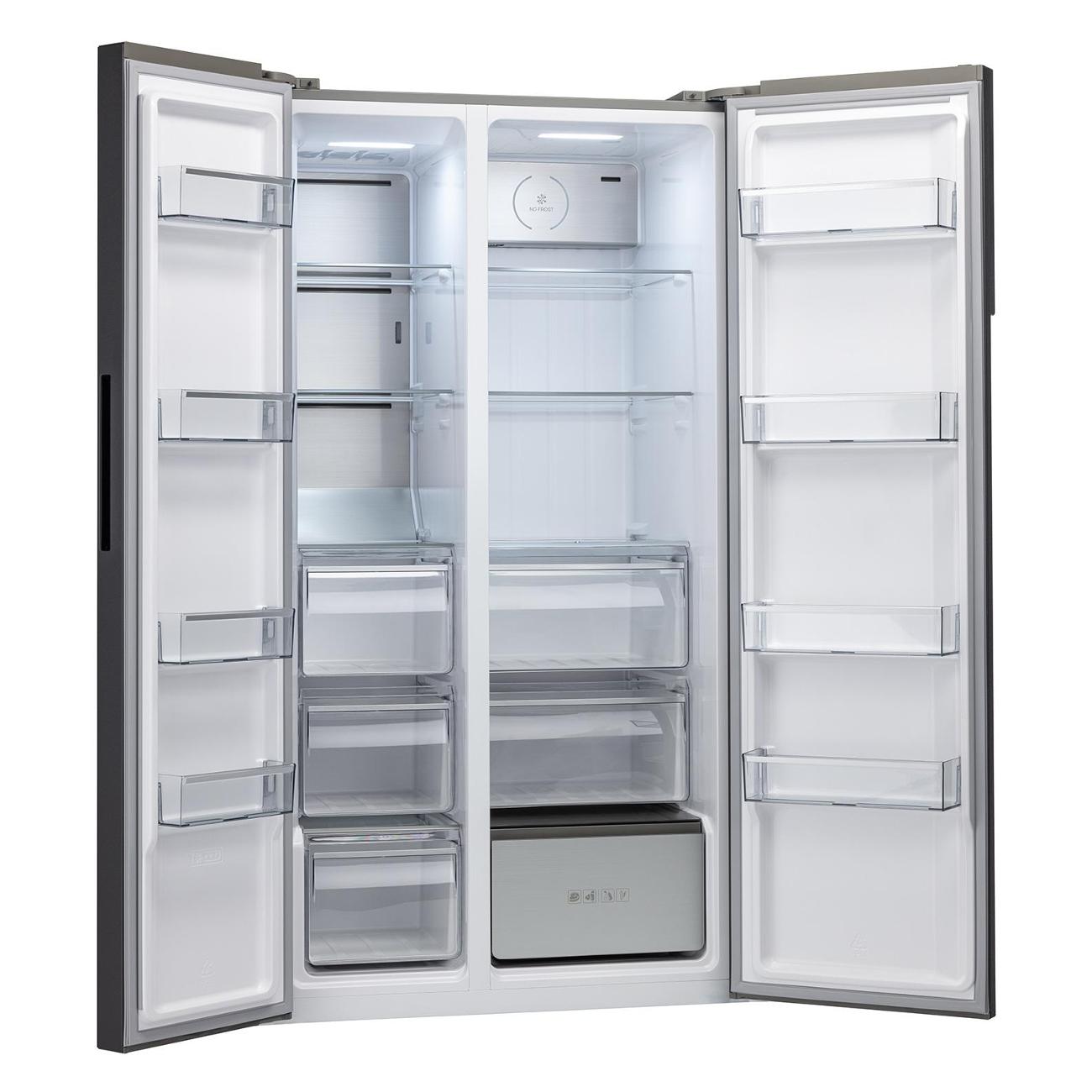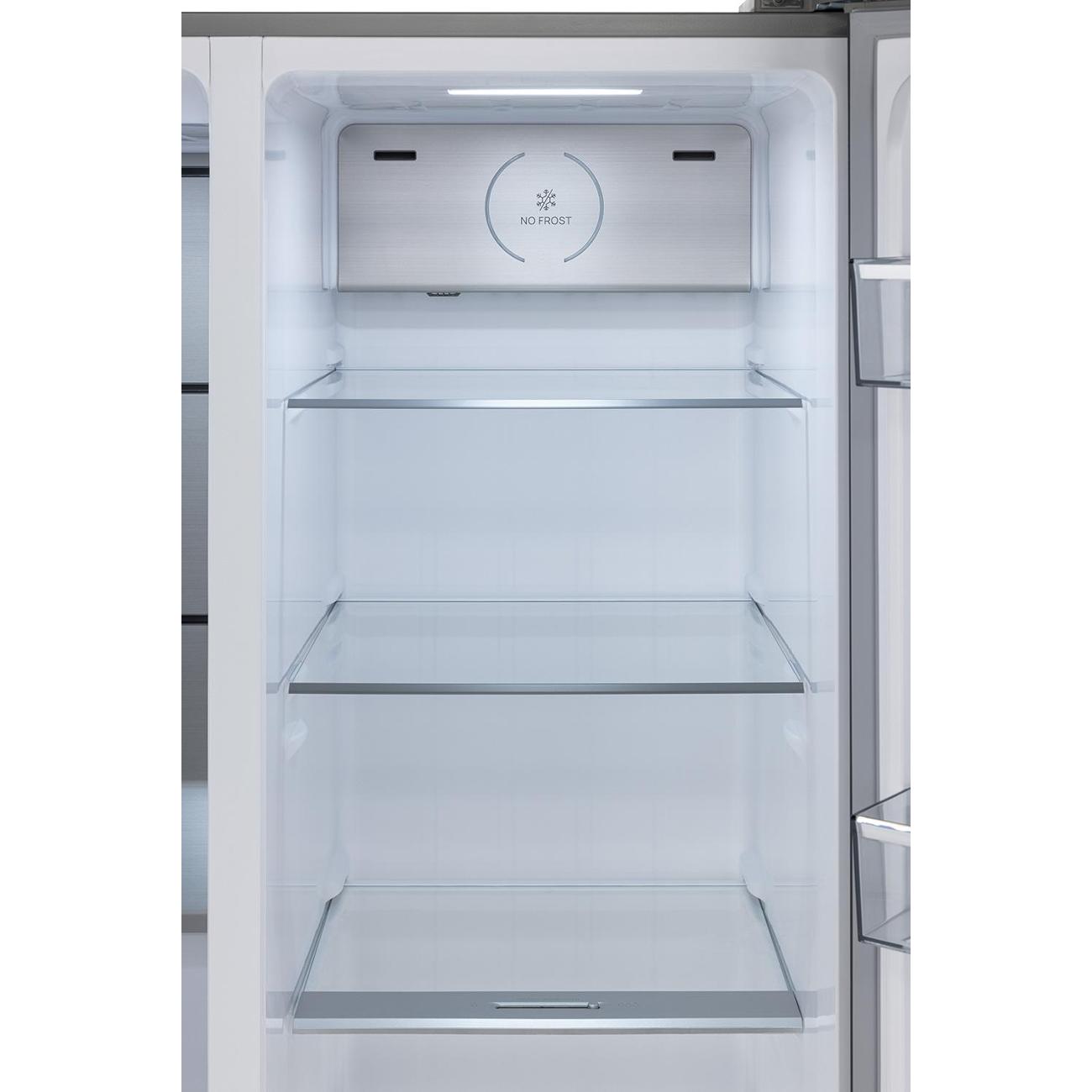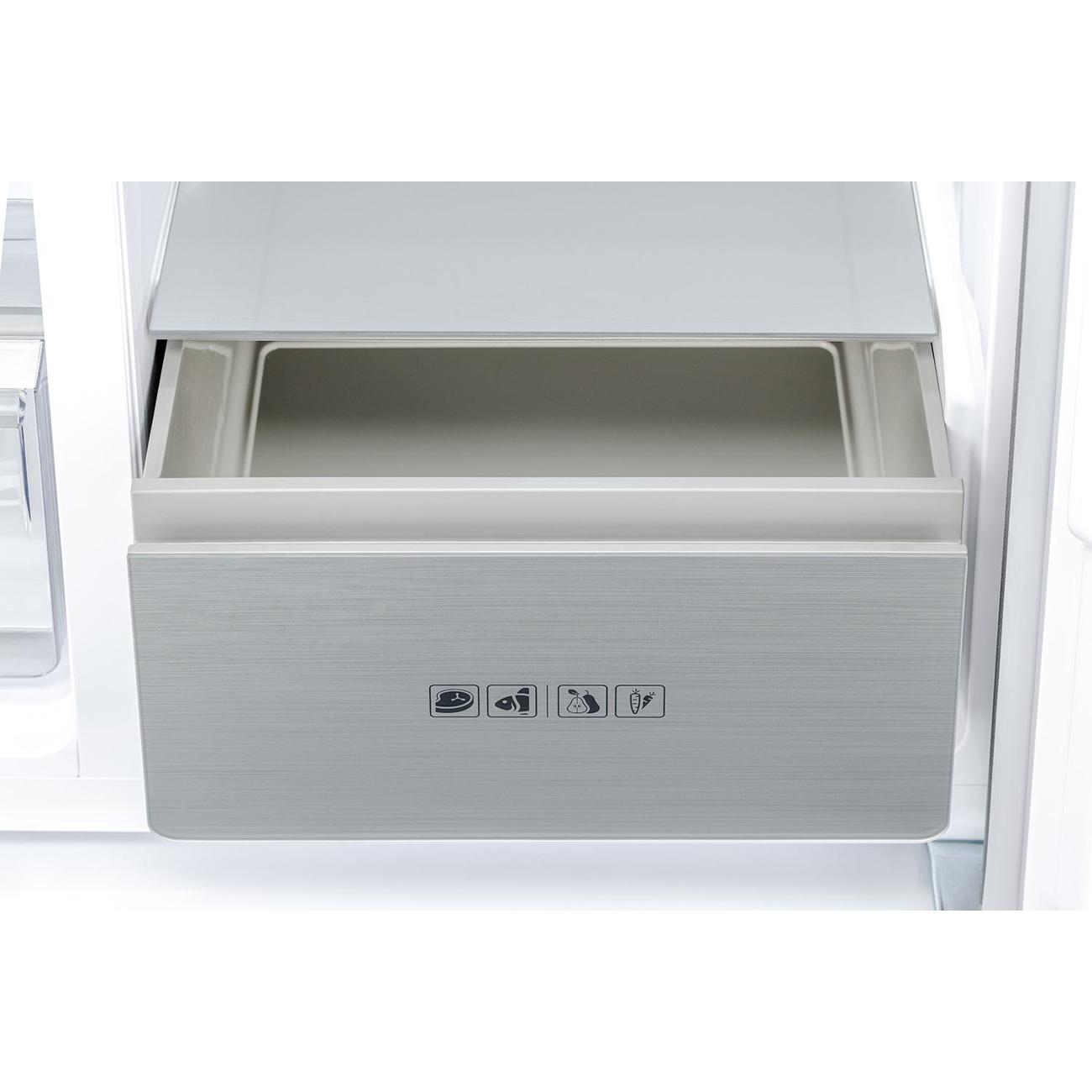 Настраиваемый температурный режим морозильной камеры — от -14°С до -22°С. Суточная мощность замораживания достигает 15 кг. Для длительного хранения продуктов предусмотрены четыре дверные полки, три выдвижных ящика и три основные полки. При отключении электроэнергии холод в камере сохраняется до 10 часов. Холодильник поддерживает функции «Суперзаморозка», «Отпуск» и «Эко». Предусмотрена защитная блокировка управляющего модуля от случайного изменения настроек и звуковая индикация при открытой дверце. Система No Frost предупреждает образование наледи на внутренних стенках холодильника и продуктах, не требует ручного размораживания.