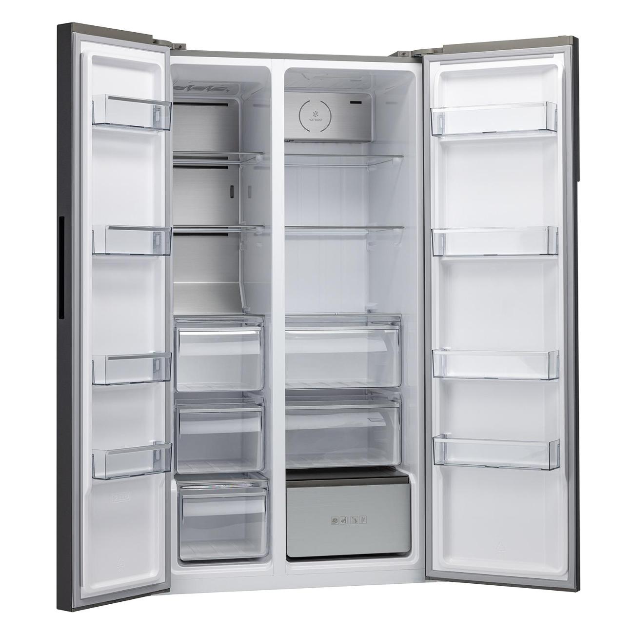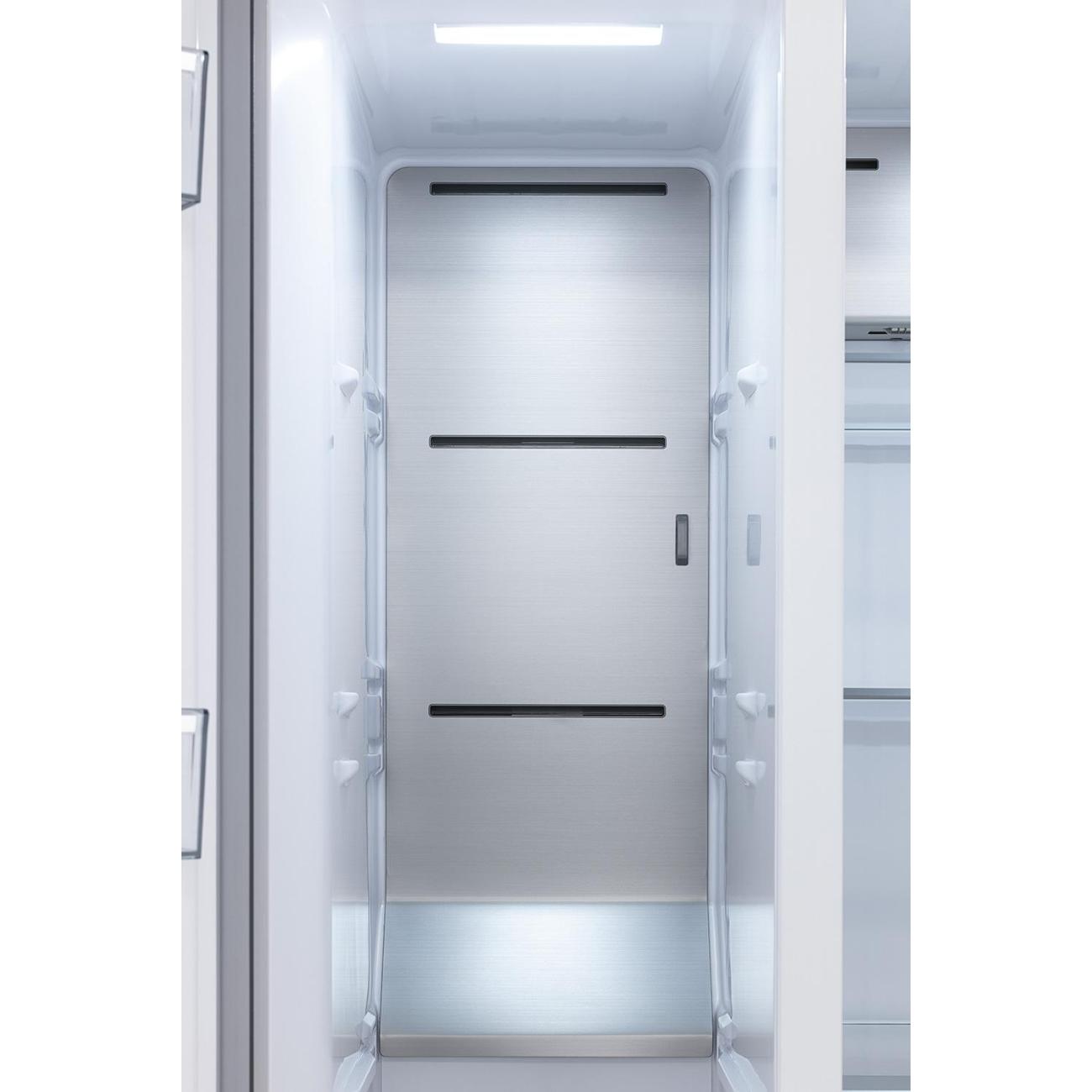 Двухдверный холодильник (Side-by-Side) Vard VRS177NI оснащен инверторным компрессором и инверторным вентилятором, которые работают тихо (показатель шума не превышает 39 дБ) и поддерживают равномерное охлаждение камер. Габариты прибора 1770х930х730 мм оптимальны для установки на большой кухне. Задняя металлическая панель Metal Cooling обеспечивает быстрое охлаждение загружаемых продуктов. Для управления настройками предусмотрен внешний сенсорный экран.