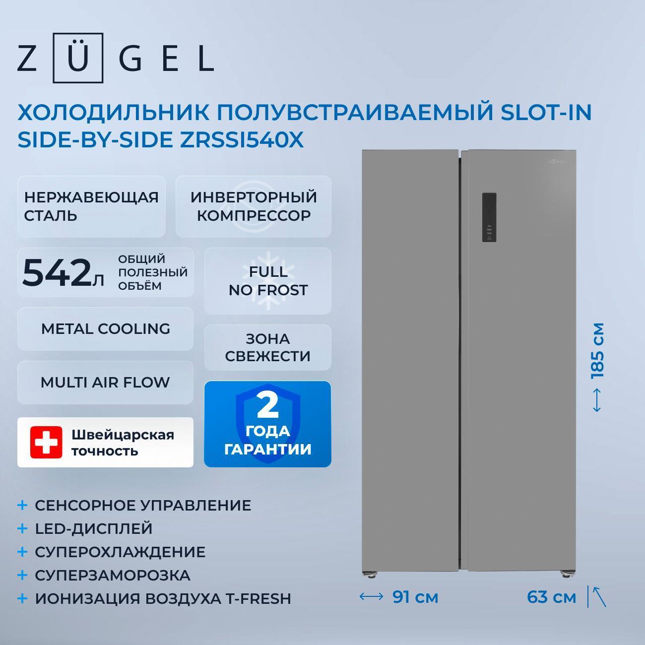 Вы можете купить Холодильник (Side-by-Side) ZUGEL ZRSSI540X в магазинах М.Видео по доступной цене. Холодильник (Side-by-Side) ZUGEL ZRSSI540X: подробное описание, фото и отзывы реальных покупателей, характеристики, возможность скачать инструкции и подобрать аксессуары.