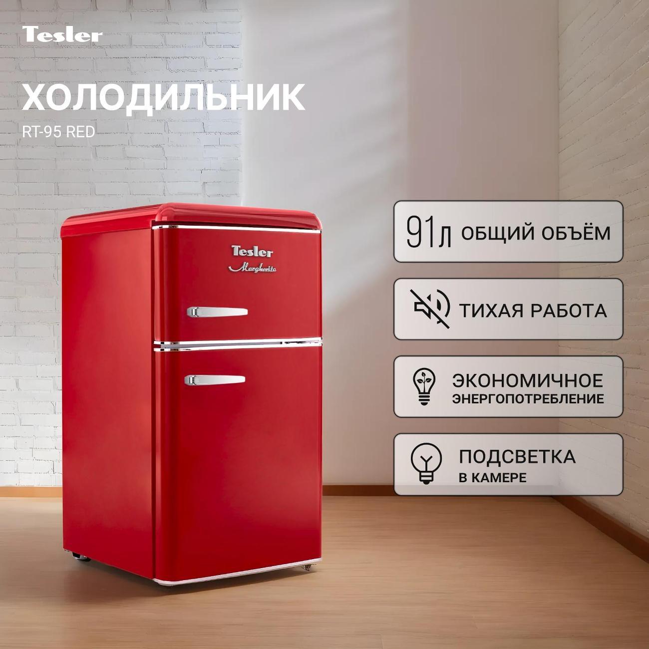 Вы можете купить Холодильник Tesler RT-95 красный в магазинах М.Видео по доступной цене. Холодильник Tesler RT-95 красный: подробное описание, фото и отзывы реальных покупателей, характеристики, возможность скачать инструкции и подобрать аксессуары.