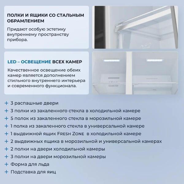 Я очень довольна холодильником T-Door ZRTD459GW. Он выглядит современно и стильно, отлично вписался в интерьер кухни. Много места для продуктов, удобно расположены полки и ящики — можно быстро найти все нужное. Комбинированная система помогает хранить свежие овощи и мясо, а также сохранять напитки холодными. Особенно нравится, что холодильник тихо работает и потребляет мало электроэнергии, что важно для семейного комфорта. Прост в использовании и уходе, а функция блокировки запахов действительно помогает сохранить свежесть продуктов дольше. В целом, это отличный выбор для тех, кто ценит качество.