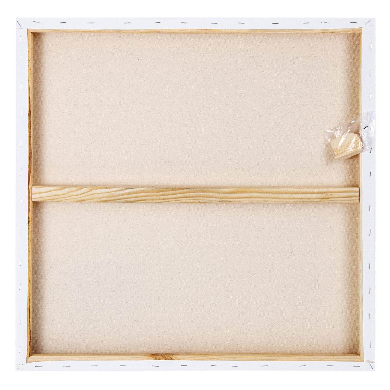 Изготовлен из 100% хлопка плотностью 440 г/м2. Хлопковое полотно характеризуется ровной поверхностью со слабовыраженным рельефом. Основную картину на лицевой стороне холста можно продолжать на широких боковых гранях, тем самым создавая более объёмную картину. Односторонний трехслойный акриловый грунт позволяет сохранить цвета неизменными, не допуская их прожухания. Холст прямоугольной формы на подрамнике полностью готов к работе.