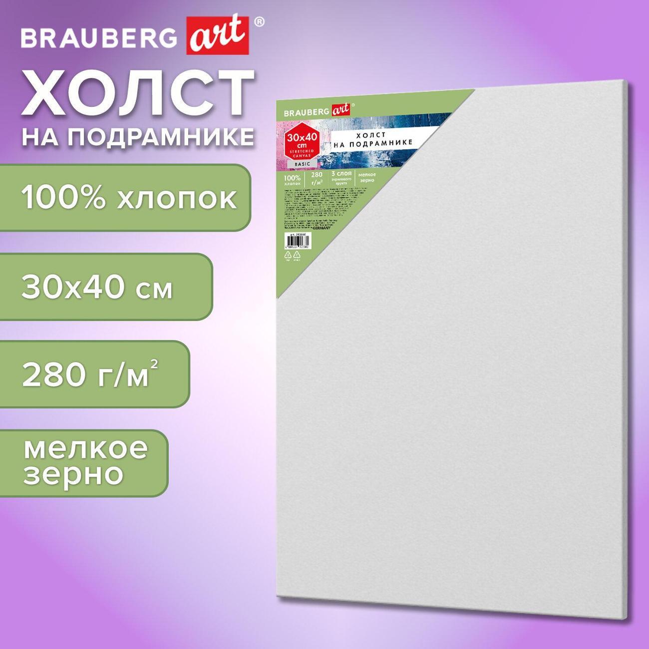 Изготовлен из хлопка плотностью 280 г/м2. Хлопковое полотно характеризуется ровной поверхностью со слабовыраженным рельефом. Мелкозернистая фактура позволяет писать в различных техниках, прорисовывать мелкие детали. Односторонний трехслойный акриловый грунт позволяет сохранить цвета неизменными, не допуская их прожухания. Холст прямоугольной формы на подрамнике полностью готов к работе.
