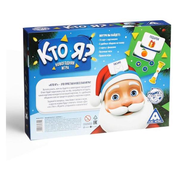 Новогодняя настольная игра «Лас Играс» 4979322 «Кто я?» не только развлекает, но и тренирует логическое мышление и способность анализировать информацию. Правила просты и понятны: игроки должны быстро и эффективно находить правильного персонажа. В комплекте идет 70 карт с цветными картинками, песочные часы, шесть ободков, две карты с фишками, правила игры. В процессе могут участвовать от двух до шести человек. Возрастное ограничение: 5+. Габаритные размеры: 17х23 см. Материал изготовления: бумага, картон, песок, пластик.