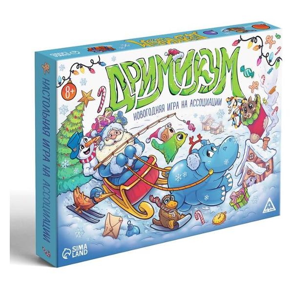 Новогодняя настольная игра «Лас Играс» 4985208 «Дримикум» помогает развивать воображение, креативность и логику. Набор содержит уникальные иллюстрации и карточки, каждая из которых предлагает определенную задачу или вопрос. В комплекте: 98 карточек, шесть фишек игроков, 36 жетонов, игровое поле, правила игры. Игроков может быть от двух до шести. Подходит для мальчиков и девочек старше восьми лет. Материал: бумага, картон и пластик. Небольшую коробку размером 17х23 см удобно брать в путешествие.