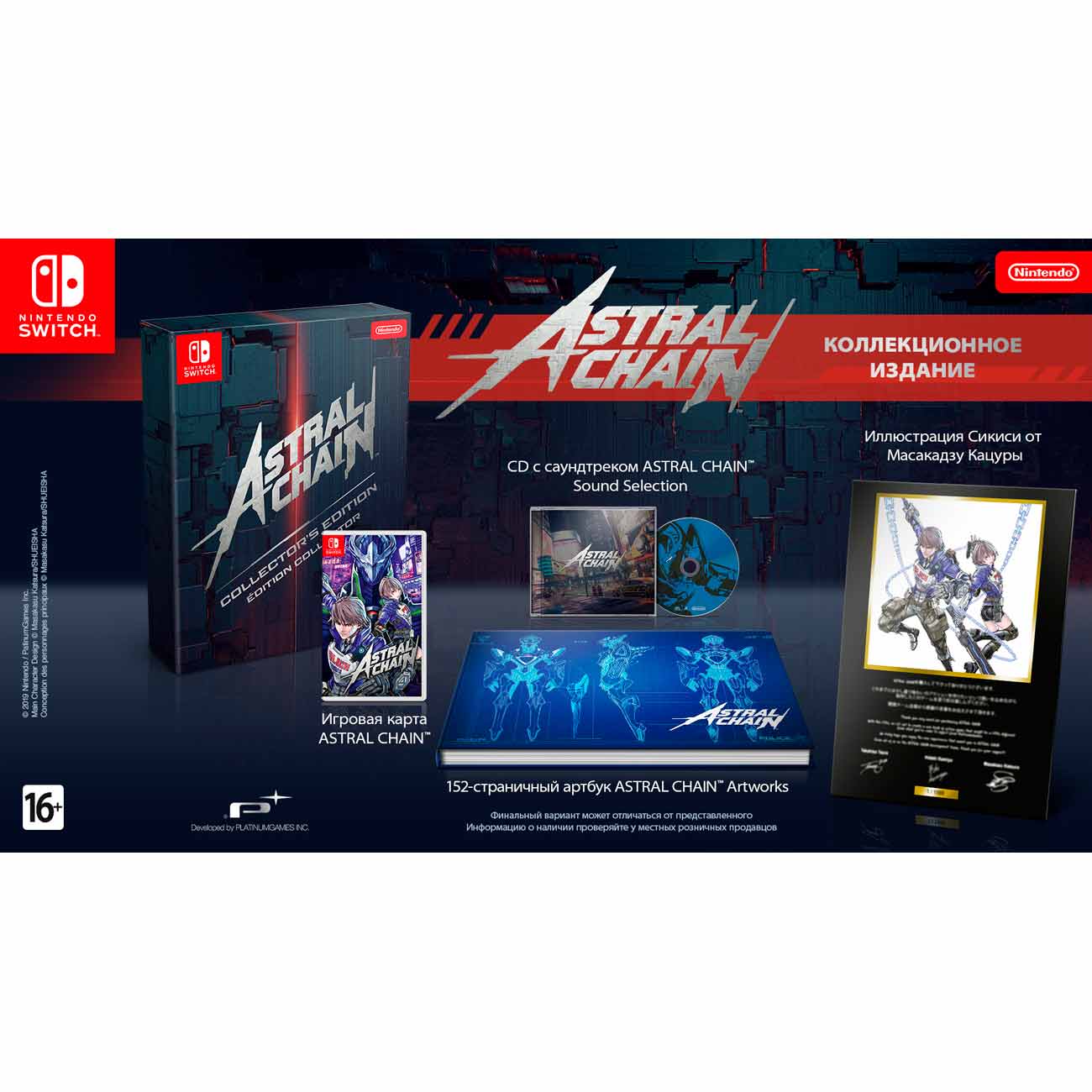 В коробке с игрой ты найдёшь постер от художника Масакадзу Кацуры, 152-страничный артбук и диск с саундтреком.