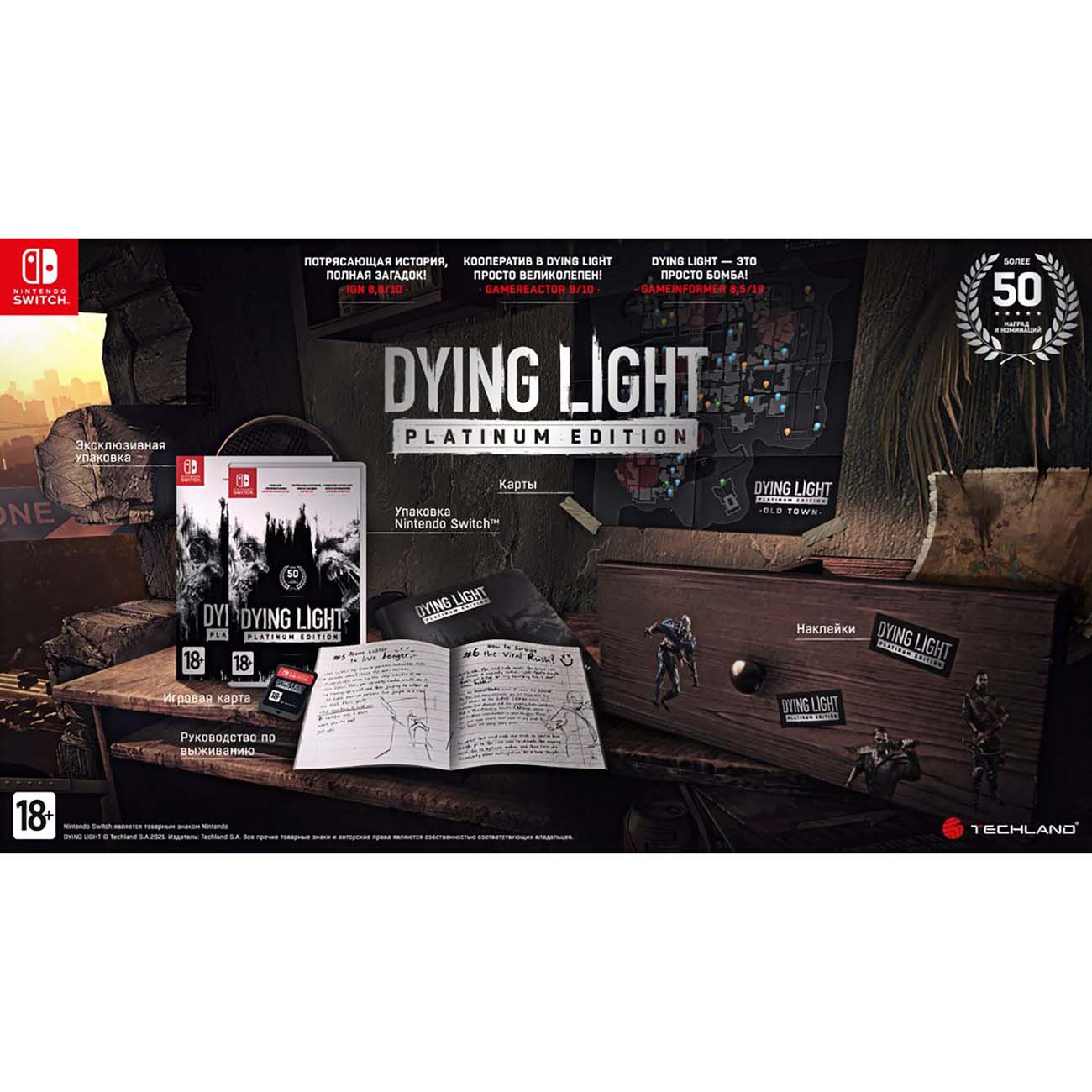 Издание Dying Light: Platinum Edition включает в себя картридж с игрой в пластиковом боксе, двустороннюю карту Трущоб и Старого города, руководство по выживанию и набор наклеек.