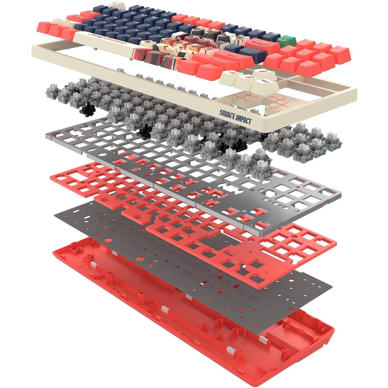 Колпачки из полибутилентерефталата устойчивы к истиранию и сохранению текстуры. Облегченная конструкция ускоряет возврат клавиш в исходное положение, обеспечивая быстрое срабатывание в скоростных играх.