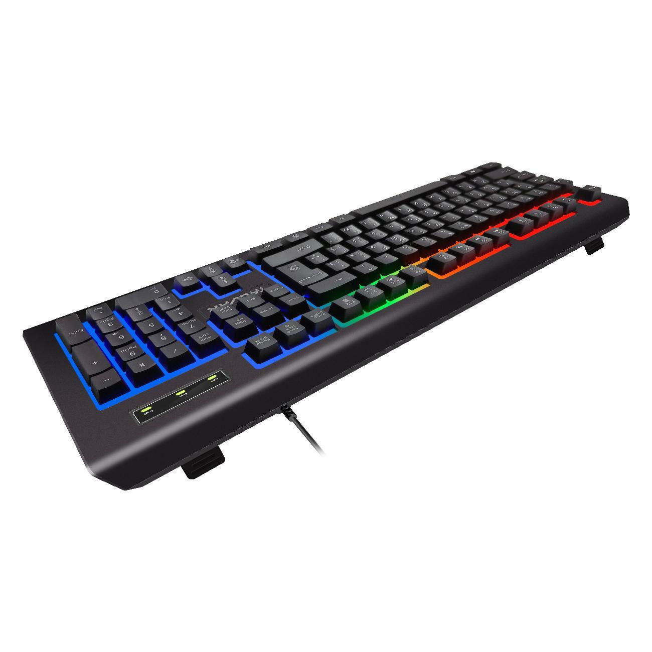 Клавиатура оснащена радужной подсветкой, которая создает необходимую атмосферу для игровых сессий. Подсветку можно полностью отключить комбинацией клавиш FN+Sl для работы в условиях естественного освещения. Дополнительные 12 функций, активируемых через клавишу FN, позволяют управлять мультимедийными программами, регулируя громкость или воспроизведение.