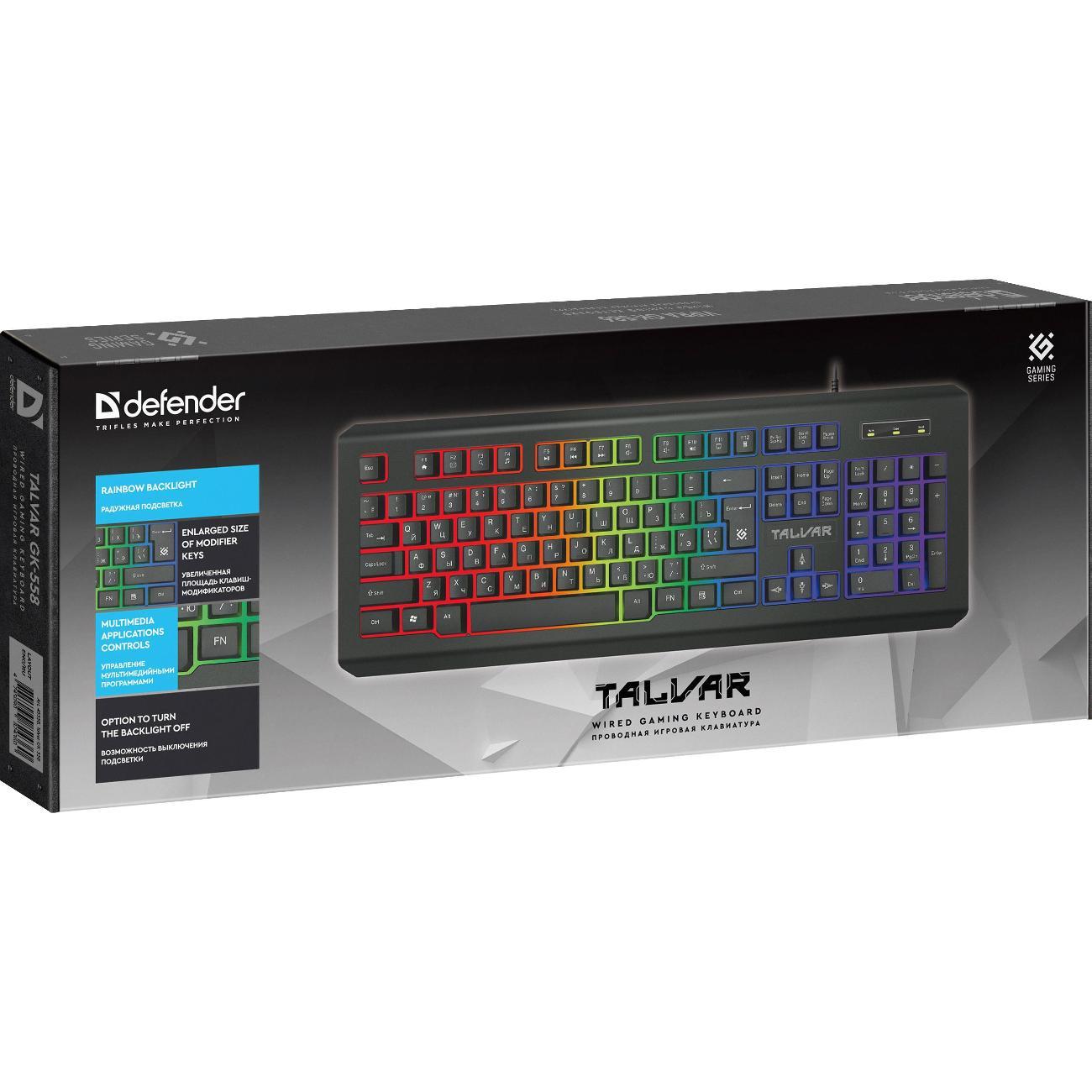 Клавиатура Defender Talvar GK-558 — классическая проводная модель, предназначенная для использования в играх и повседневных задачах.