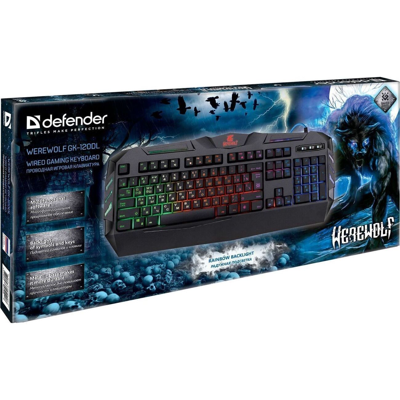 Игровая клавиатура Werewolf GK-120DL от Defender выполнена в максимально стильном дизайне и даёт тебе доступ к набору игровых функций, значительно упрощающих сам процесс и осуществление ключевых действий.