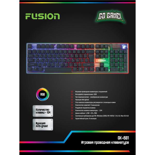 Вы можете купить Игровая клавиатура Fusion GK-681 в магазинах М.Видео по доступной цене. Игровая клавиатура Fusion GK-681: подробное описание, фото и отзывы реальных покупателей, характеристики, возможность скачать инструкции и подобрать аксессуары.