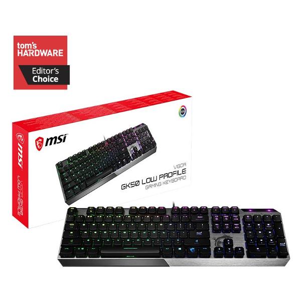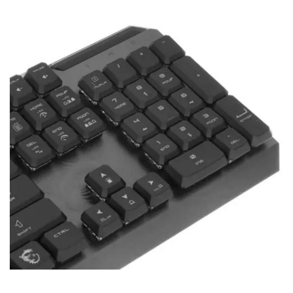 Игровая клавиатура MSI Gaming Vigor GK50 Low Profile — низкопрофильная модель с русской и английском раскладками. Количество клавиш — 104. Предусмотрена поддержка функции одновременного нажатия клавиш NKRO, что немаловажно в динамичных игровых баталиях.