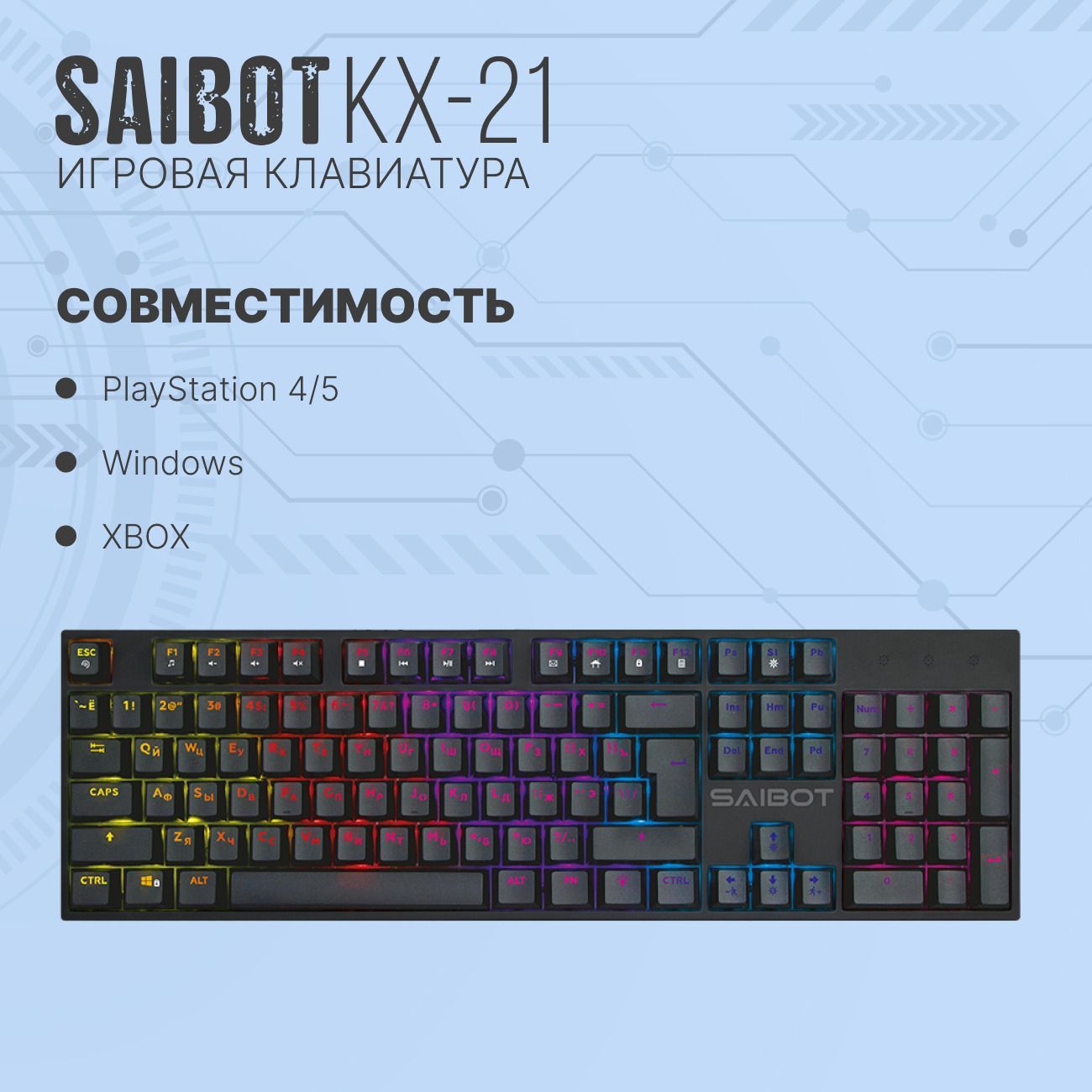 Игровая клавиатура TFN Saibot KX-21 Black предназначена для комфортной игры. Оснащена 104 механическими клавишами, обеспечивающими быстрый и точный отклик. Интерфейс связи с ПК — USB. Длина кабеля — 1,5 м. Материал корпуса — пластика. Габаритные размеры — 12,7x4x43,2 см. Вес — 700 г. Страна-производитель — Китай. Гарантия один год.
