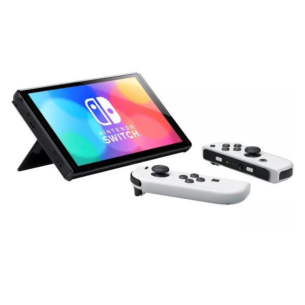 Игровая консоль Nintendo Switch, белая снабжена экраном диагональю 7 дюймов с системой подсветки OLED, которая обеспечивает высочайший уровень контраста. Корпус консоли выполнен из пластика и оснащен выдвижной подставкой-опорой.