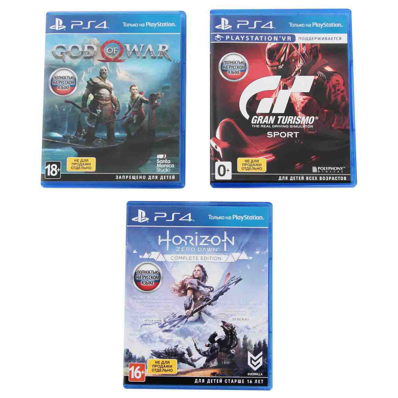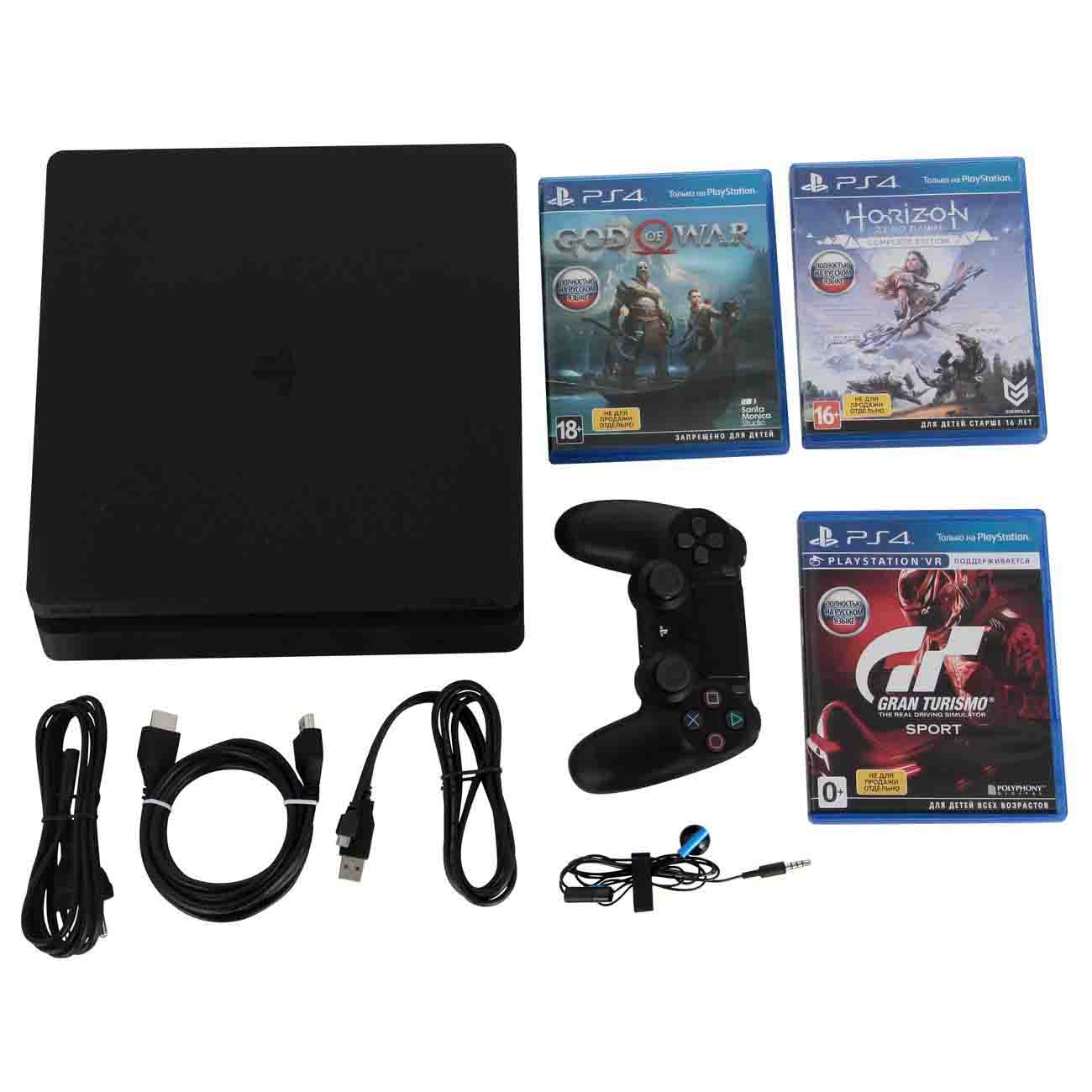 Комплект включает в себя не только PlayStation 4 Slim, но и несколько главных хитов консоли. В их число входят боевик God of War, вдохновлённый скандинавскими мифами, один из главных гоночных симуляторов планеты Gran Turismo Sport и необычайный по красоте постапокалиптичный мир ролевого экшена Horizon: Zero Dawn. Кроме того, на протяжении трёх месяцев ты сможешь бесплатно пользоваться услугами сервиса PS Plus.