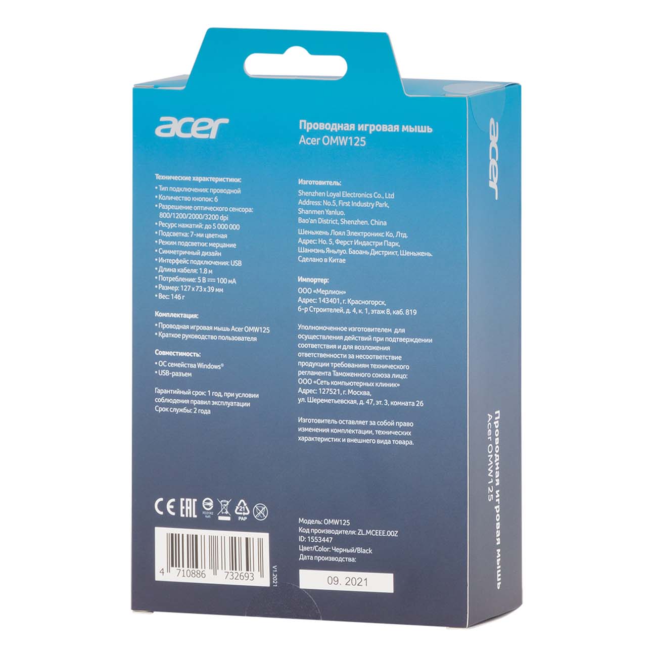 Вы можете купить Игровая мышь Acer OMW125 (ZL.MCEEE.00Z) в магазинах М.Видео по доступной цене. Игровая мышь Acer OMW125 (ZL.MCEEE.00Z): подробное описание, фото и отзывы реальных покупателей, характеристики, возможность скачать инструкции и подобрать аксессуары.