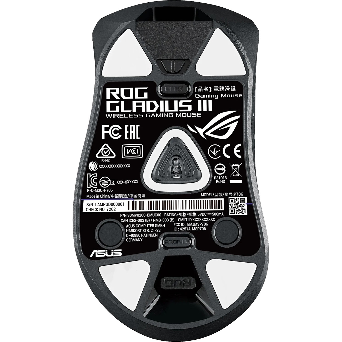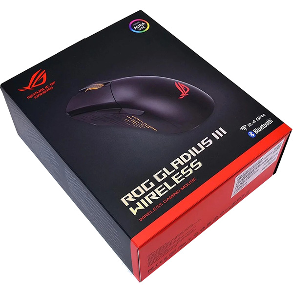 Игровая мышь Asus Rog Gladius III WL в черном пластиковом корпусе асимметричной формы действует в радиусе 10 м. Посередине изделия находятся небольшое колесо прокрутки, подсвечиваемое изнутри, и шесть программируемых кнопок. Оптический светодиодный сенсор быстро реагирует на касание и способствует точному наведению курсора. Скорость перемещения составляет 1000 см/сек.