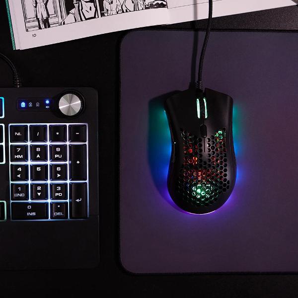 Отличная игровая мышка. Сделана качественное, из хорошего пластика, не хлипкая. Смотрится очень стильно из-за своего необычного рисунка на корпусе. Присутствует красивая подсветка, которая переливается разными цветами. Имеет провод оптимальной длины, не мешается в работе. Покупка удалась.