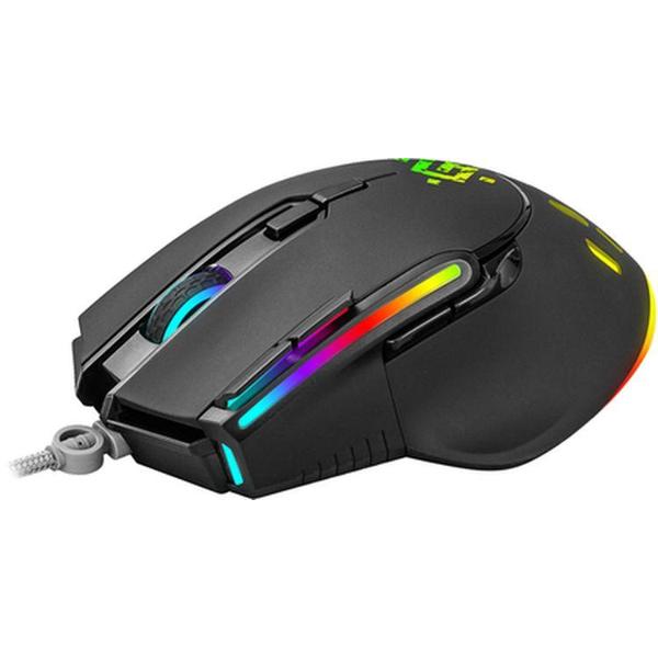 Модель оснащена шестью режимами работы, что обеспечивает быстрое переключение между различными настройками. Интерфейсом связи с ПК служит USB Type-A. Кабель выполнен с оплеткой, длина равна 1,75 м. Присутствует радужная подсветка, которую при необходимости можно отключить. Вес изделия — 0,13 г.