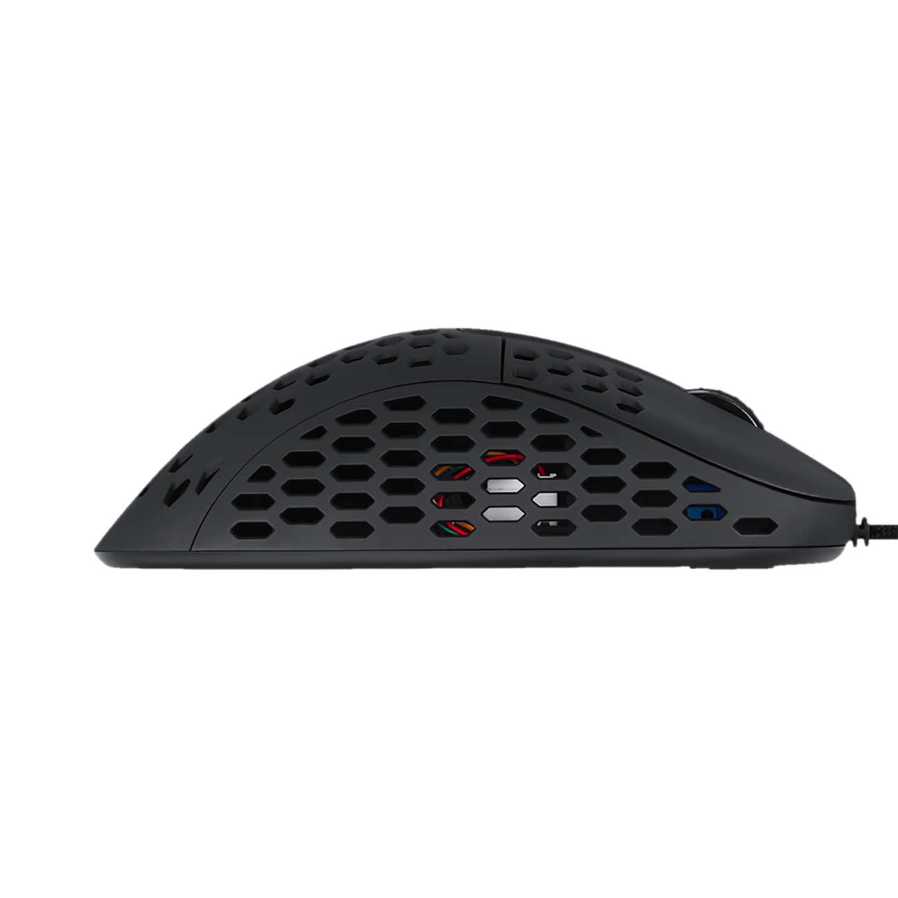 Игровая мышь Dream Machines DM6 Holey S, предназначенная для правой руки, весит всего 69 г. Для соединения с компьютером используется USB-кабель, длина которого составляет 1,8 м. Он защищен от повреждений прочной тканевой оплеткой.