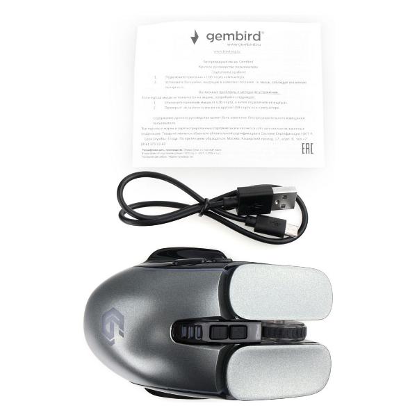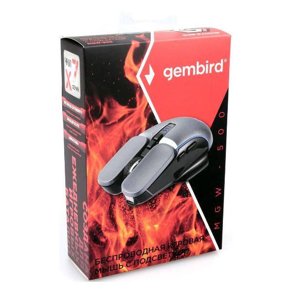 Игровая мышь Gembird MGW-500 Gr выполнена в пластиковом корпусе серого цвета с двумя упорами под пальцы. По краям установлена RGB-подсветка.