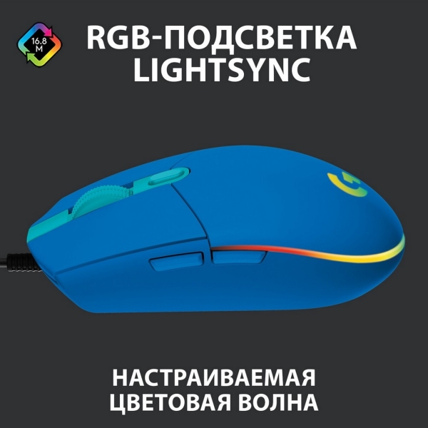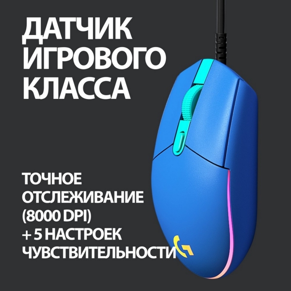 Игровая мышь Logitech G102 Lightsync Blue обладает колесом прокрутки с функцией нажатия. Максимальное разрешение датчика достигает 8000 точек на дюйм, сенсор игрового класса позволяет легко выбирать настройки чувствительности. Модель выполнена в классическом дизайне с возможностью пользования устройством правой и левой рукой. Снабжена шестью кнопками, которым можно назначить системные и игровые команды.