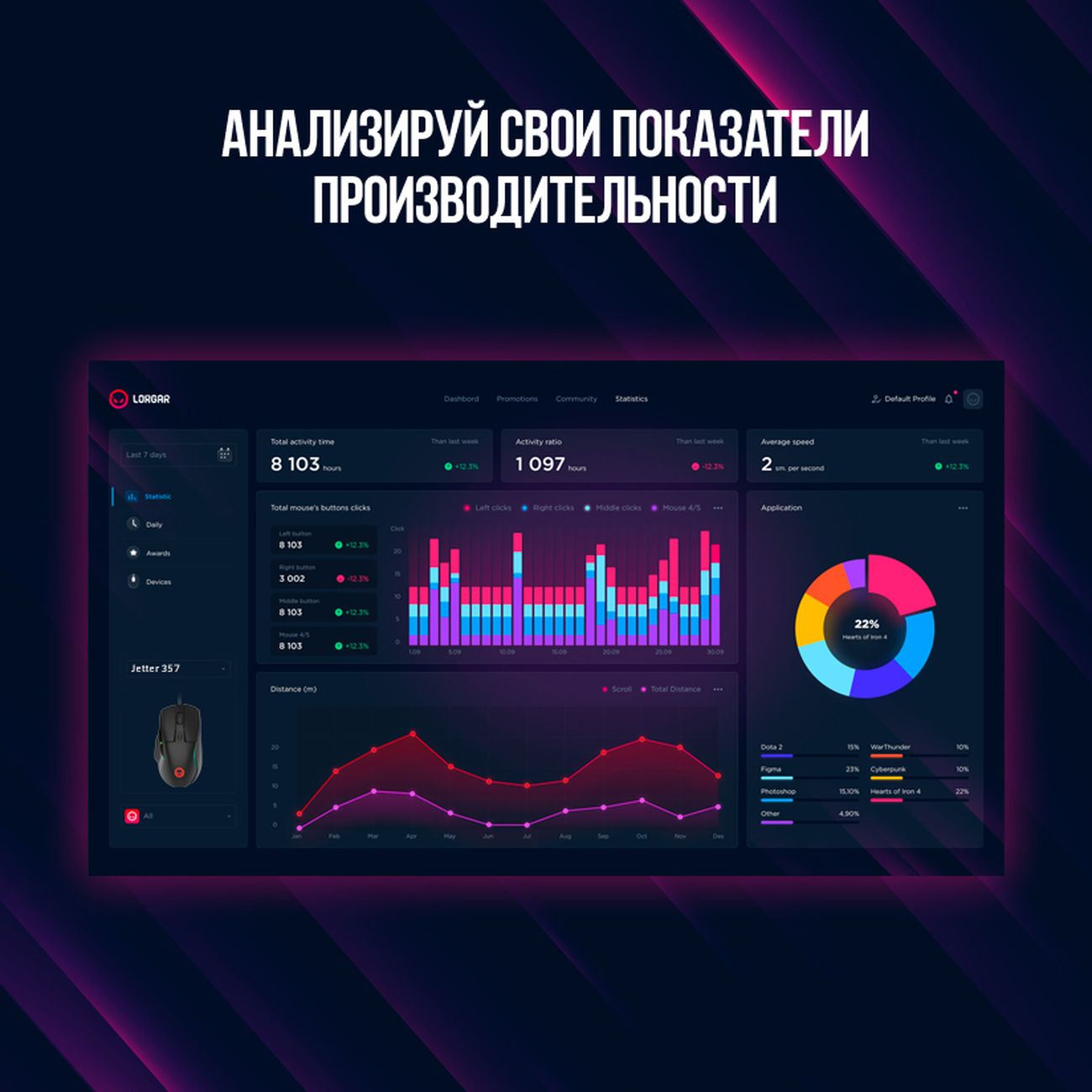 Lorgar LRG-GMS357 — проводная игровая мышь в корпусе черного цвета, разработанная для использования правой рукой. Длина кабеля для подключения к компьютеру — 1,85 м. Ножки сделан из фторопласта, обеспечивающего легкое скольжение по любой поверхности. Скорость движения достигает 250 см/сек.