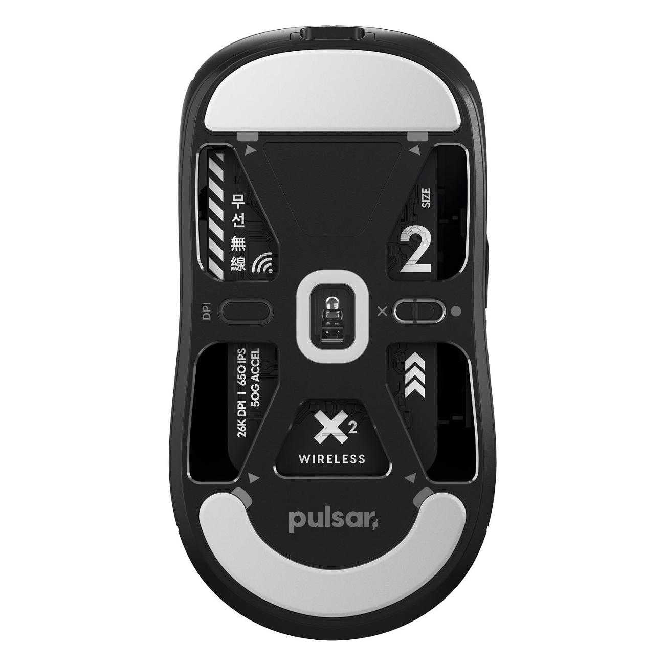 Игровая мышь Pulsar X2 Wireless, черная работает от флагманского датчик PixArt PAW3395, который поддерживает изменение скорости от 50 dpi до 26000 dpi. Максимальная скорость перемещения составляет 1651 м/с.