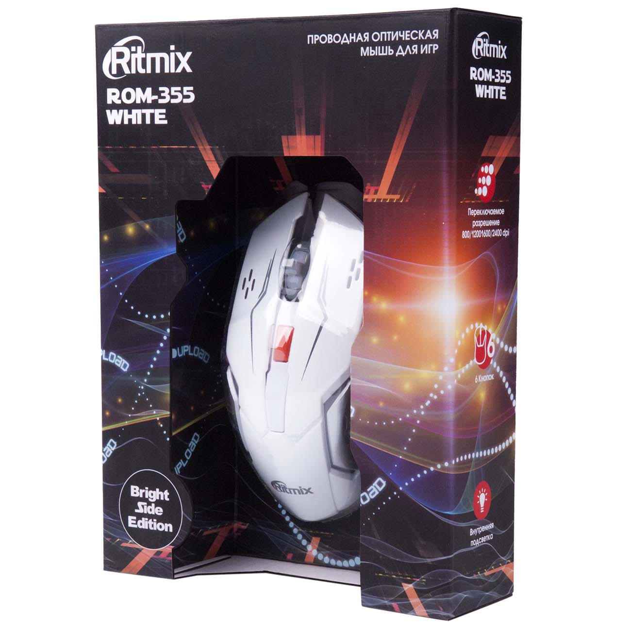Мышь Ritmix ROM-355 разработана специально для любителей компьютерных игр — как начинающих геймеров, так и профессионалов. Она работает от провода с USB-разъемом. Корпус изготовлен из высококачественного пластика, приятного на ощупь.