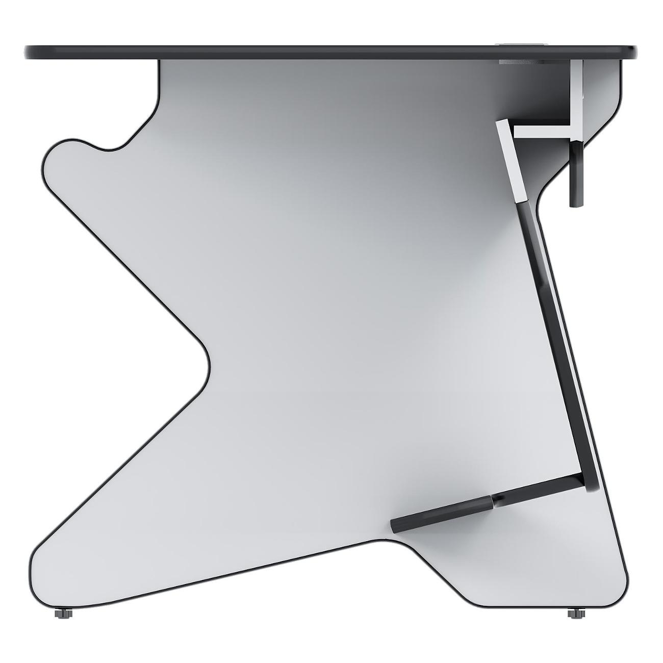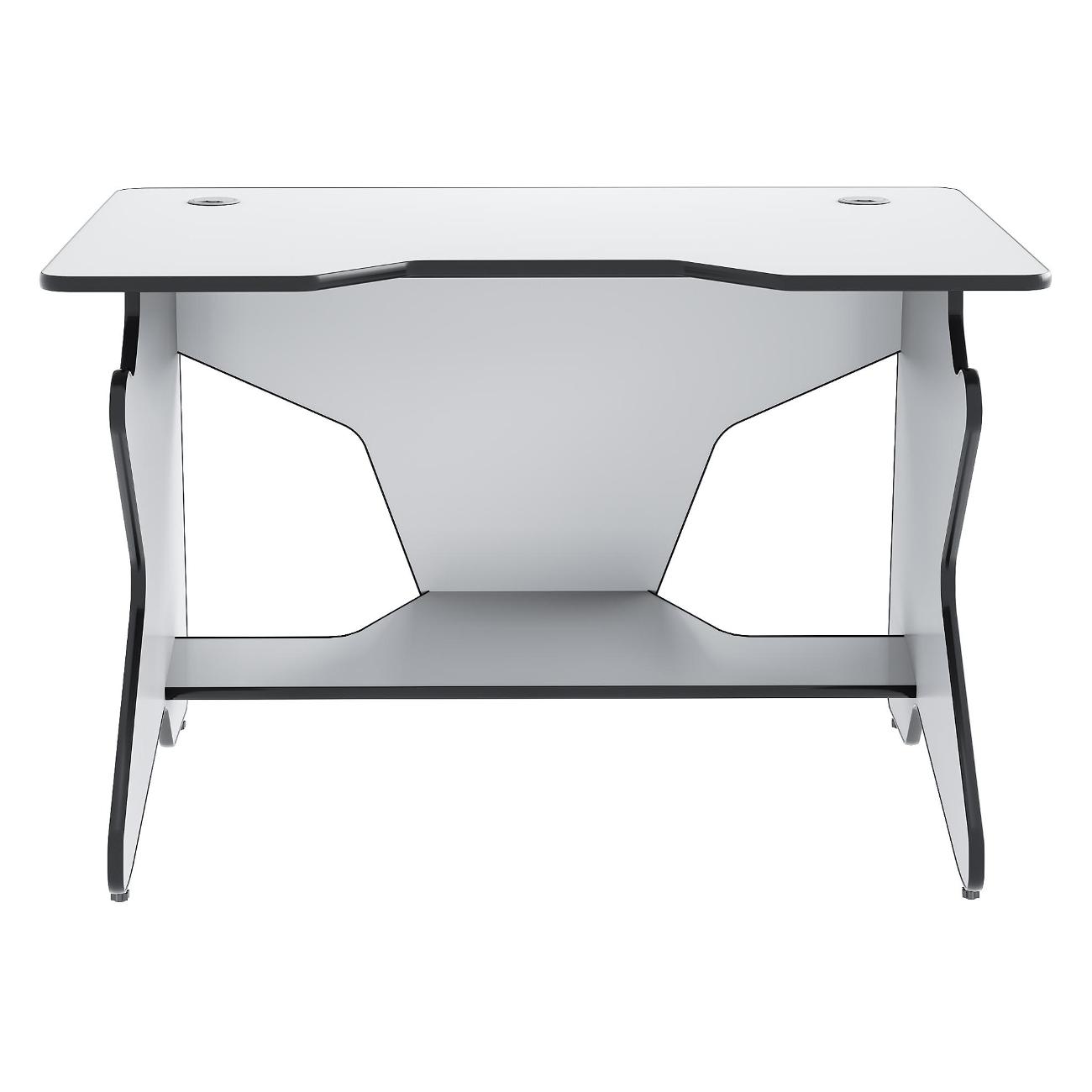 Рабочая поверхность дополнена специальной выемкой для комфортного расположения перед монитором и удержания локтей в нужном положении. Конструкция изделия включает в себя регулируемые ножки и отверстие для протяжки провода, что практически исключает риск запутывания кабелей. Габаритные размеры модели — 75х120х80 см, вес — 26,4 кг. Изделие выполнено в белом и черном цветах.
