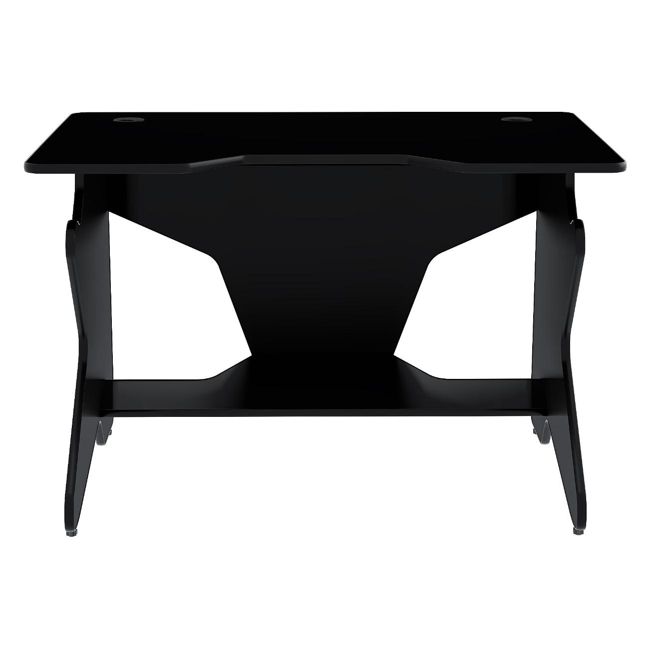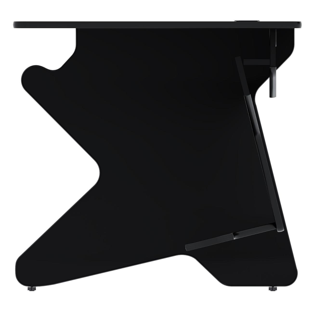 Рабочая поверхность дополнена специальной выемкой для комфортного расположения перед монитором и удержания локтей в нужном положении. Конструкция изделия включает в себя регулируемые ножки и отверстие для протяжки провода, что практически исключает риск запутывания кабелей. Габаритные размеры модели — 75х120х80 см, вес — 26,4 кг. Изделие выполнено в черном цвете.
