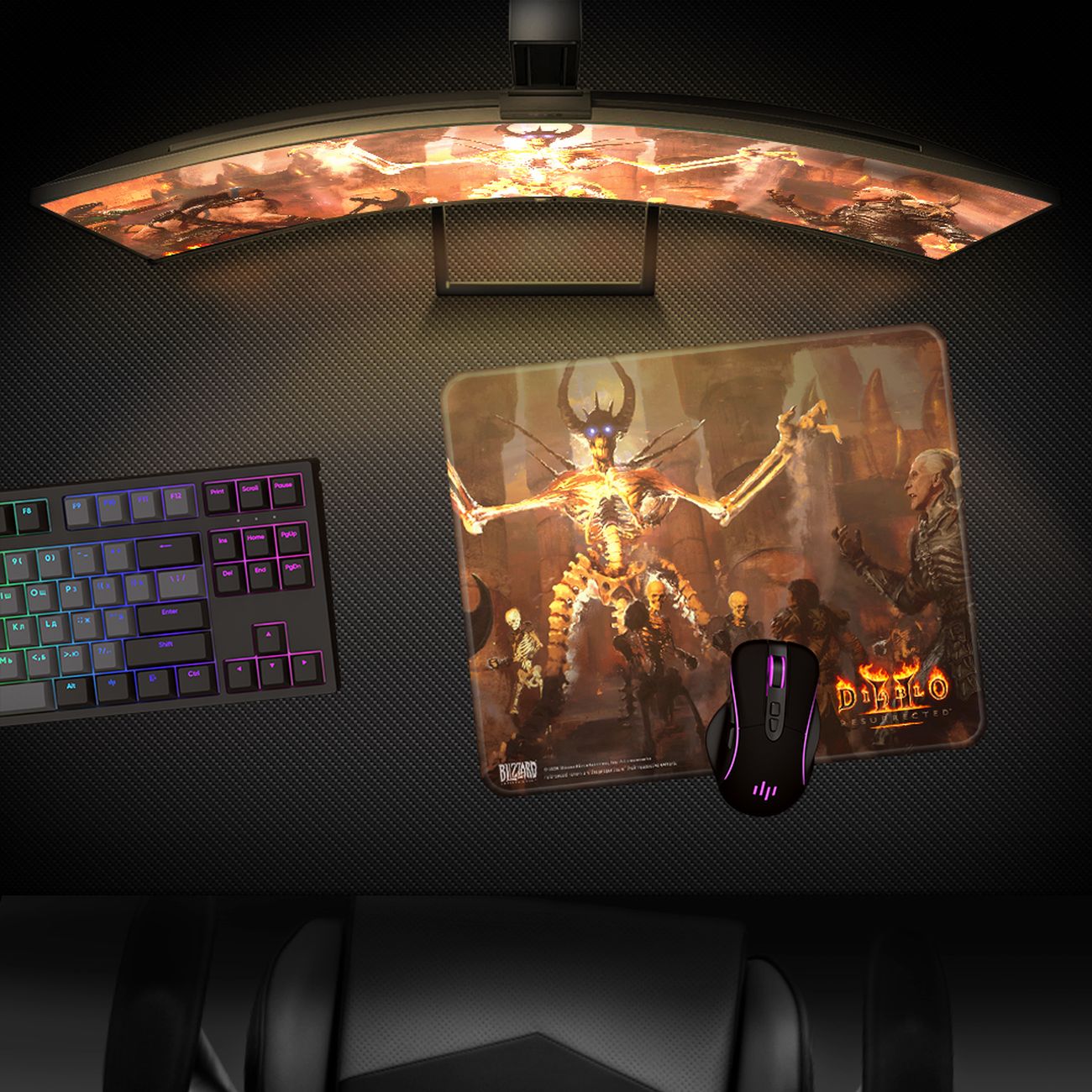 Игровой коврик Diablo Blizzard Diablo II Resurrected Mephisto L размером 4х500х420 мм оформлен в стиле известной ролевой игры в жанре экшн. Основание аксессуара выполнено из каучука, благодаря чему коврик не скользит по столешнице во время жарких геймерских баталий. Верхнее покрытие сделано из текстиля, обеспечивает плавное скольжение мыши и способствует точному позиционированию курсора. Края прошиты.