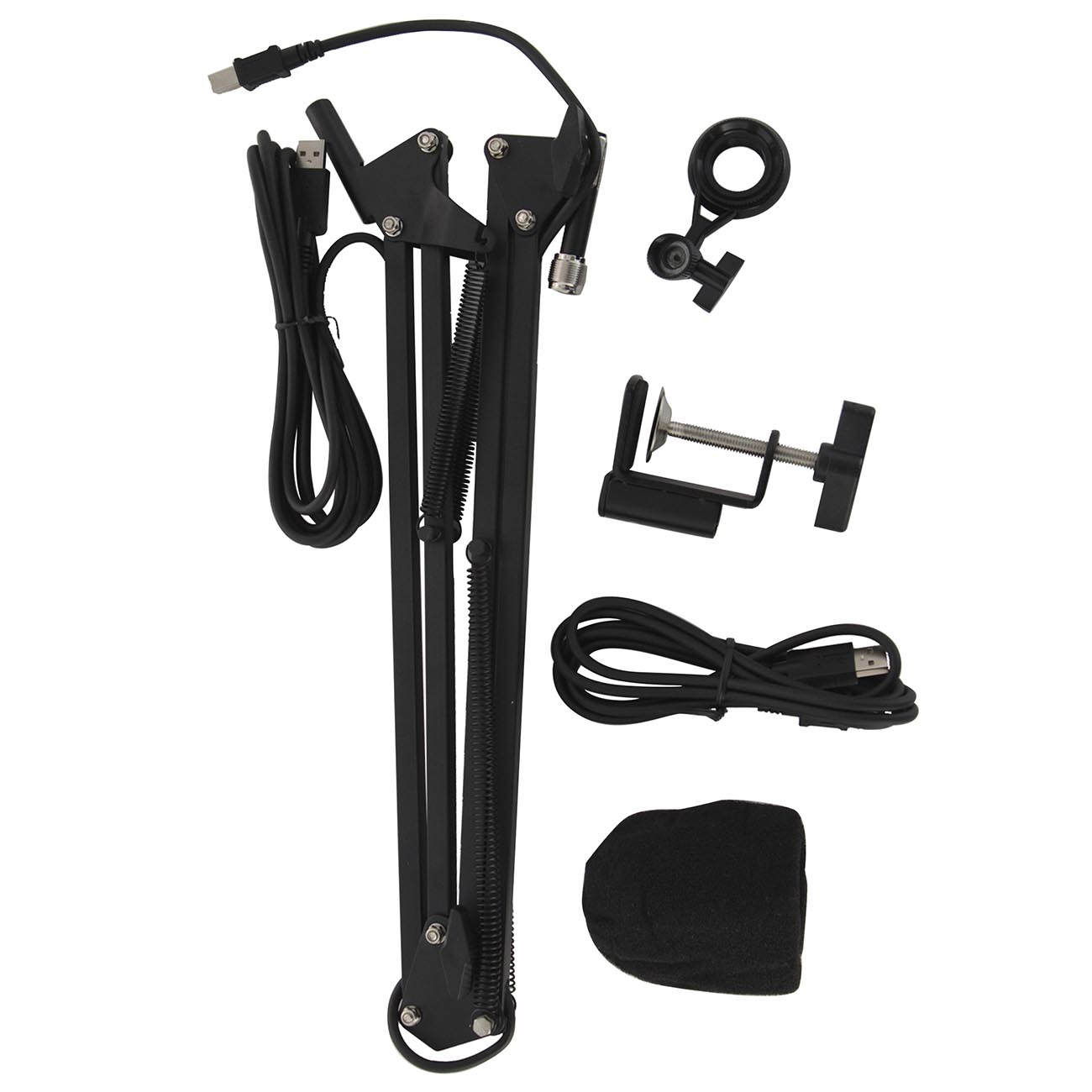 В комплект входит первоклассный подвес типа -паук-, большой двойной поп-фильтр и подставка на трех ножках
