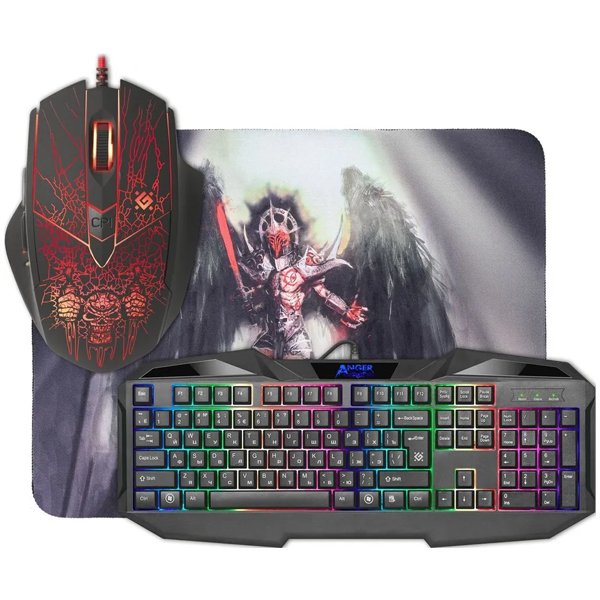 Игровой набор Defender Anger MKP-019 RU 52019 включает клавиатуру с подсветкой, мышь и коврик. Конструкция мыши подходит для правой руки. Устройство оснащено шестью кнопками с матовым покрытием. Оптический светодиодный датчик функционирует с точностью 800, 1200, 1600 и 2400 точек на дюйм. USB-интерфейсы обладают разъемами, обеспечивающими хорошую проводимость, низкое сопротивление и окисляемость.