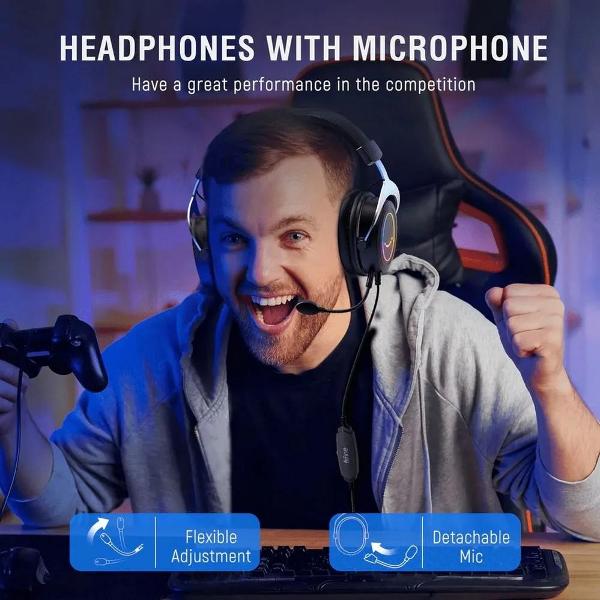Игровые наушники Fifine H3 Black закрытого акустического типа с амбушюрами из искусственной кожи выполнены в корпусе из пластика и металла черного цвета. Оголовник изготовлен из искусственной кожи и пластика. Встроена RGB-подсветка. Диаметр динамика — 50 мм. Модель подключается к ПК через разъем Jack 3,5 мм. Сопротивление отсоединяемого микрофона на гибкой штанге с системой активного шумоподавления составляет 32 Ом.