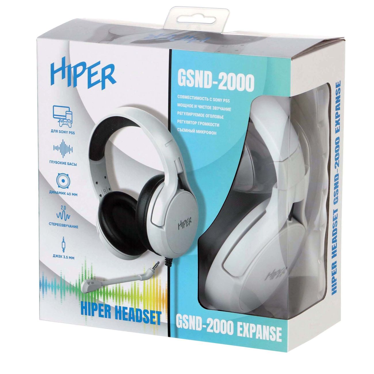 Игровые наушники Hiper GSND-2000 бело-черного цвета подключаются к компьютеру с помощью разъема miniJack 3,5 мм. Длина кабеля составляет 2 м. Корпус сделан из прочного, легкого пластика. Оголовье мягкое, регулируется. Охватывающая конструкция обеспечивает плотное прилегание, но исключает сильное давление на голову. Диаметр мембран — 40 мм.