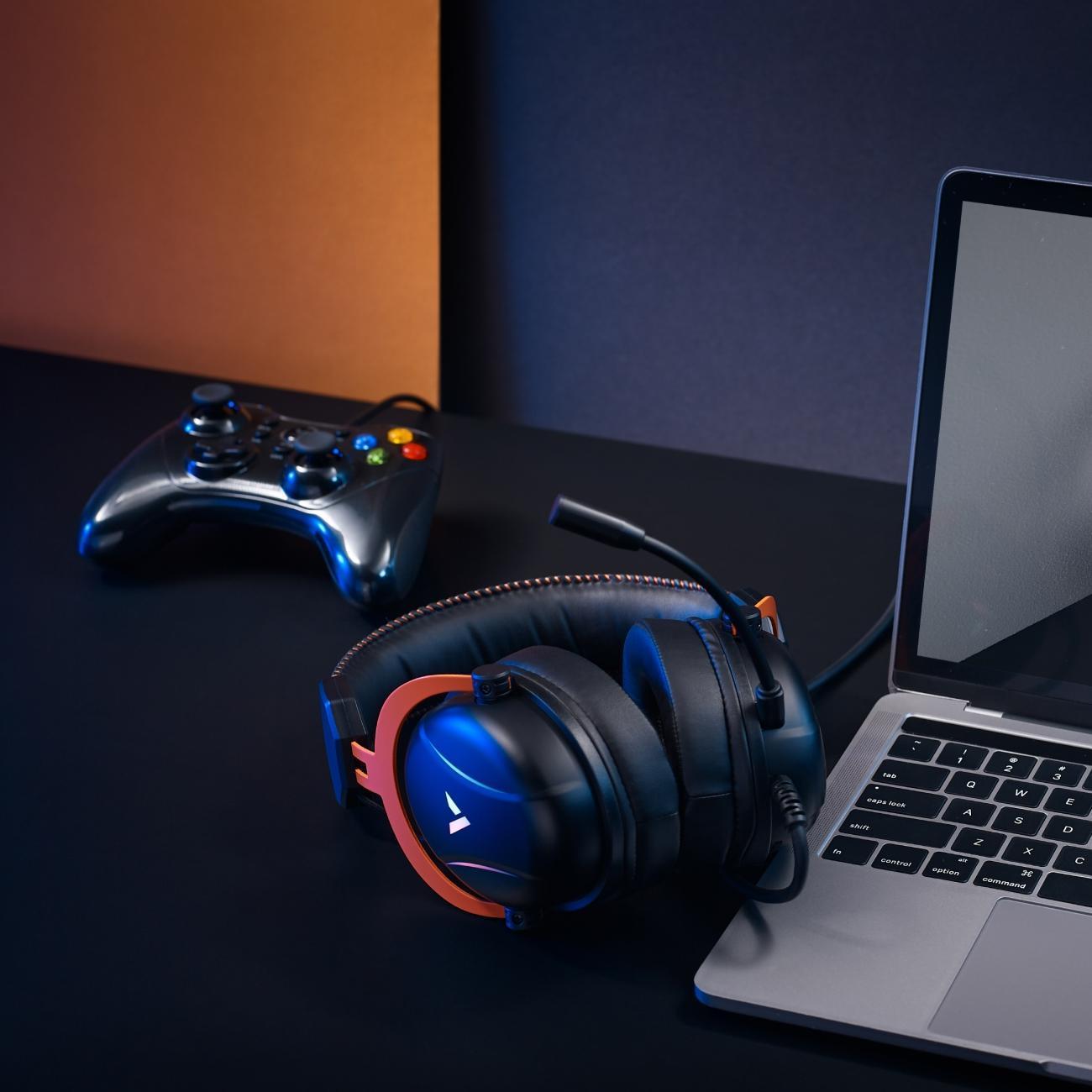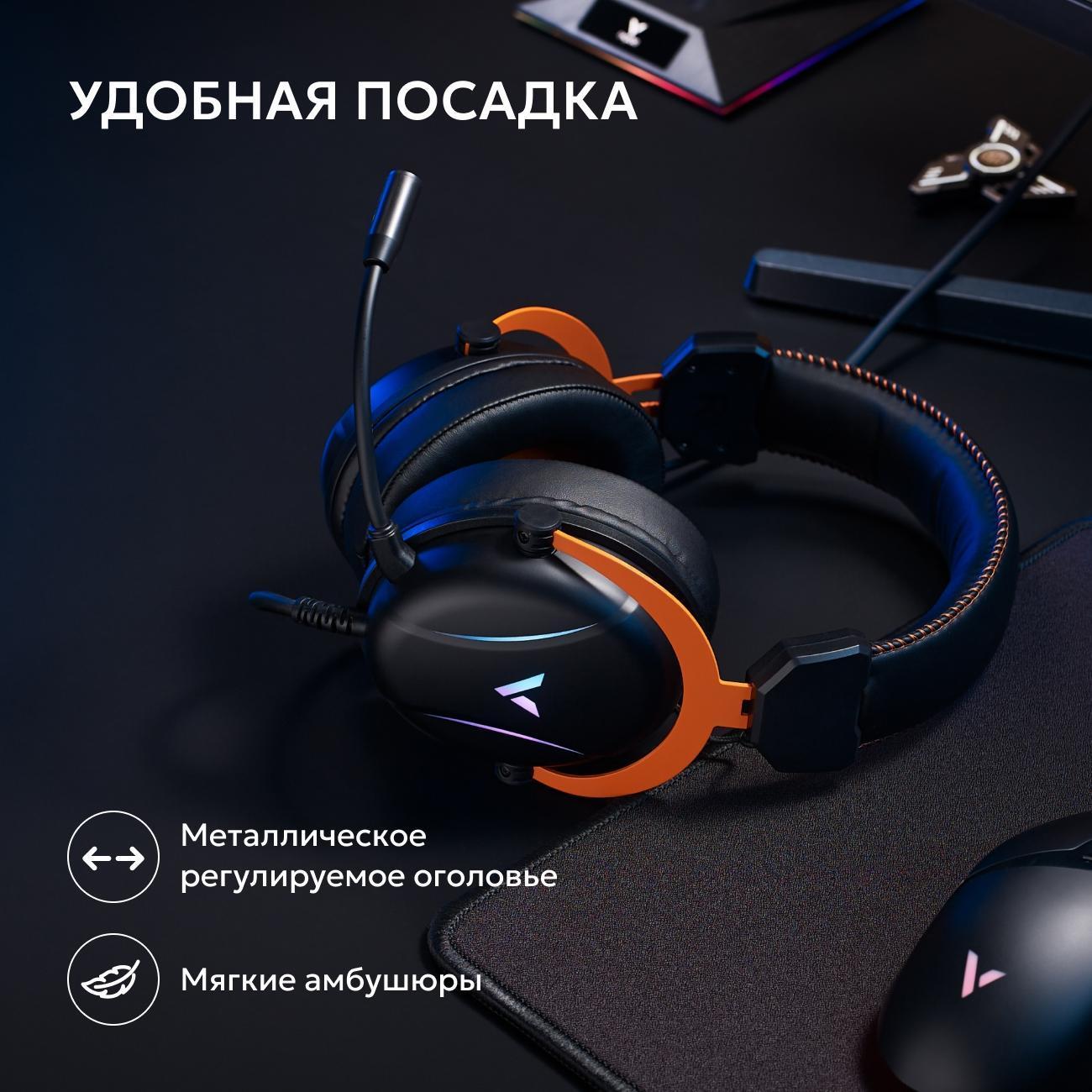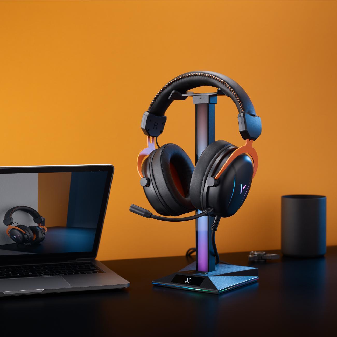 Накладные игровые наушники Rapoo VH350S подключаются к компьютеру или другому совместимому устройству с помощью USB-кабеля 1,2 м.