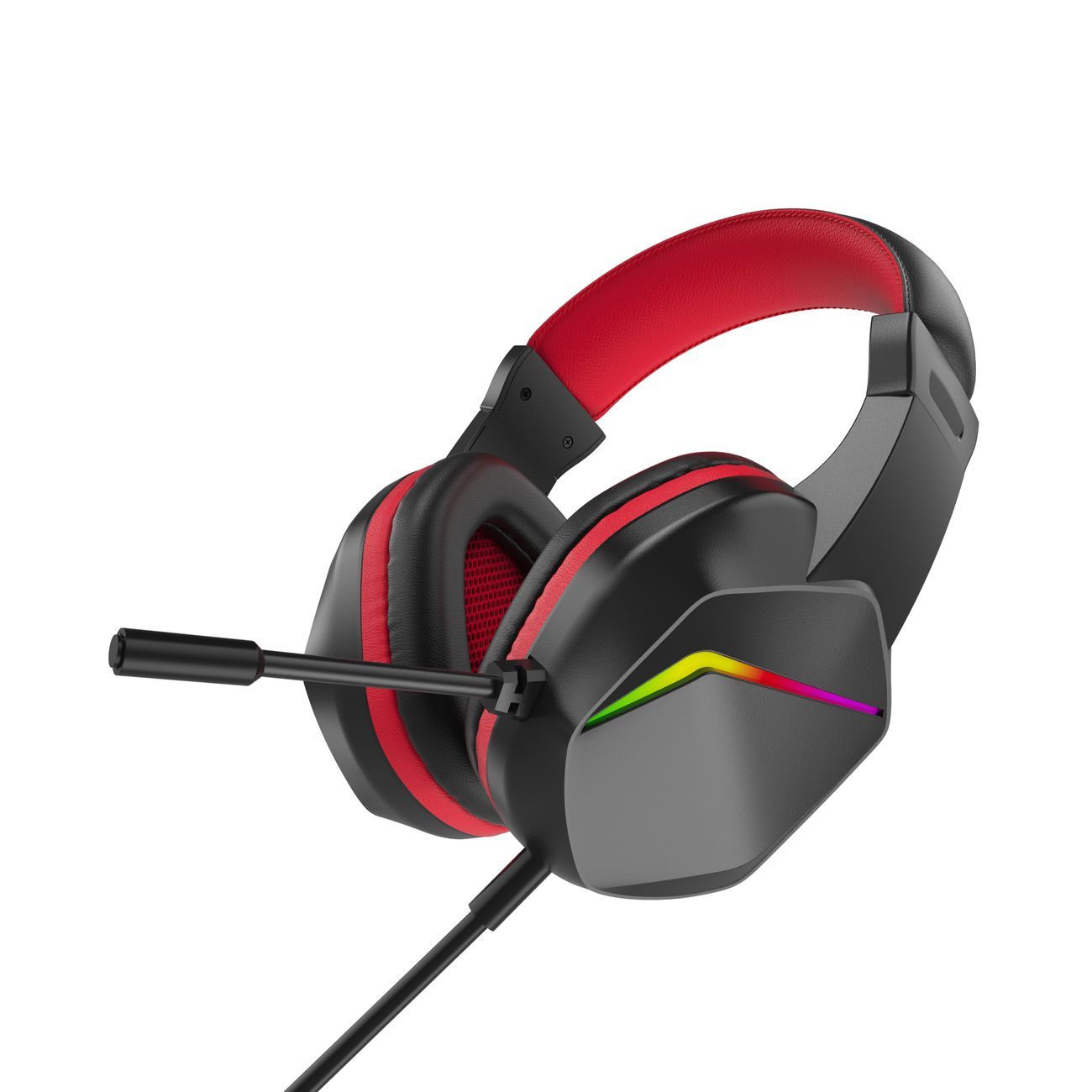 Мягкое раздвижное оголовье и амбюшуры гарантируют плотное прилегание к голове. Корпус изготовлен из пластика и оснащен эффектной светодиодной подсветкой. В модель встроен микрофон с чувствительностью 42 дБ. Его подвижное крепление позволяет выбирать максимально удобное положение. Длина аудиокабеля — 1,8 м.