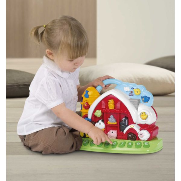 Интерактивная игрушка Chicco «Говорящая ферма» разработана для малышей в возрасте от 1 года. Развивающая музыкальная модель учит разным звукам, знакомит с животными и звучанием английского, помогает запомнить счет от 1 до 10 и основные оттенки в игровом процессе.