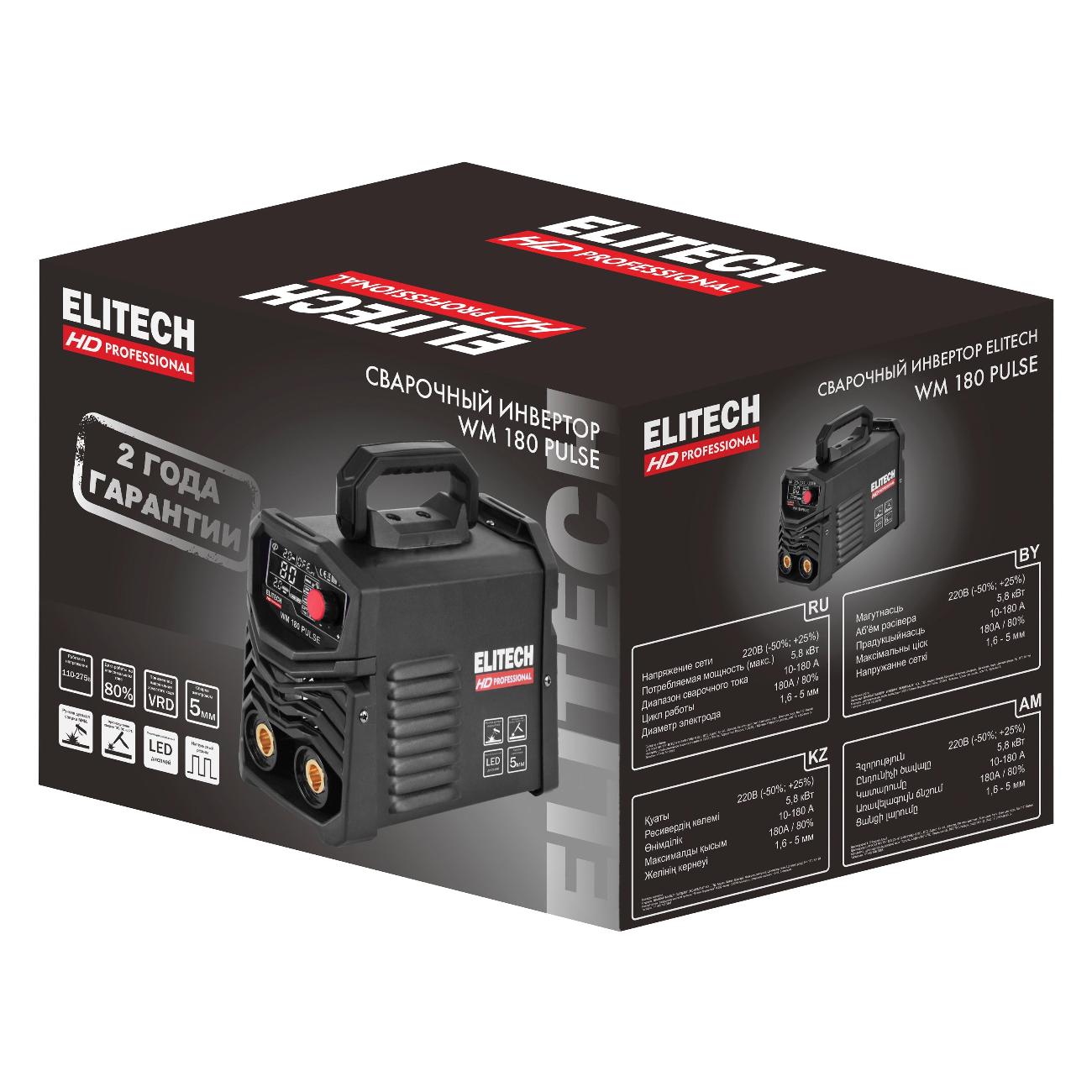 Вы можете купить Инвертор сварочный Elitech WM 180 PULSE в магазинах М.Видео по доступной цене. Инвертор сварочный Elitech WM 180 PULSE: подробное описание, фото и отзывы реальных покупателей, характеристики, возможность скачать инструкции и подобрать аксессуары.