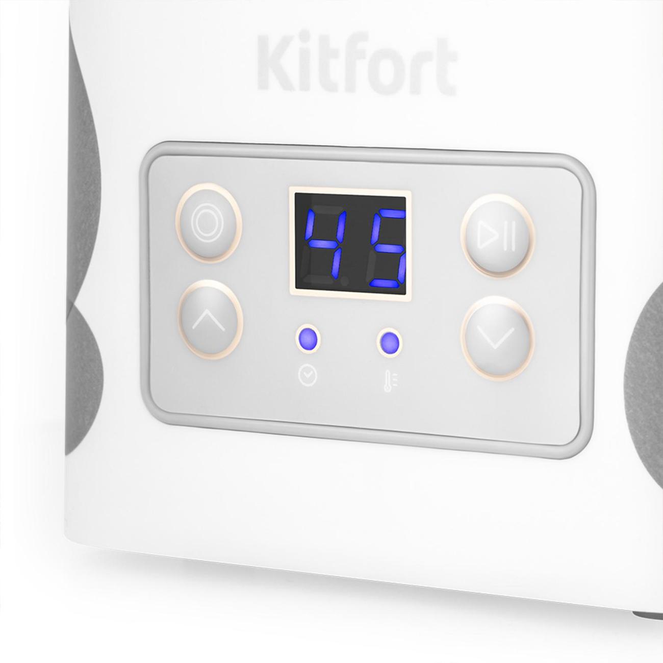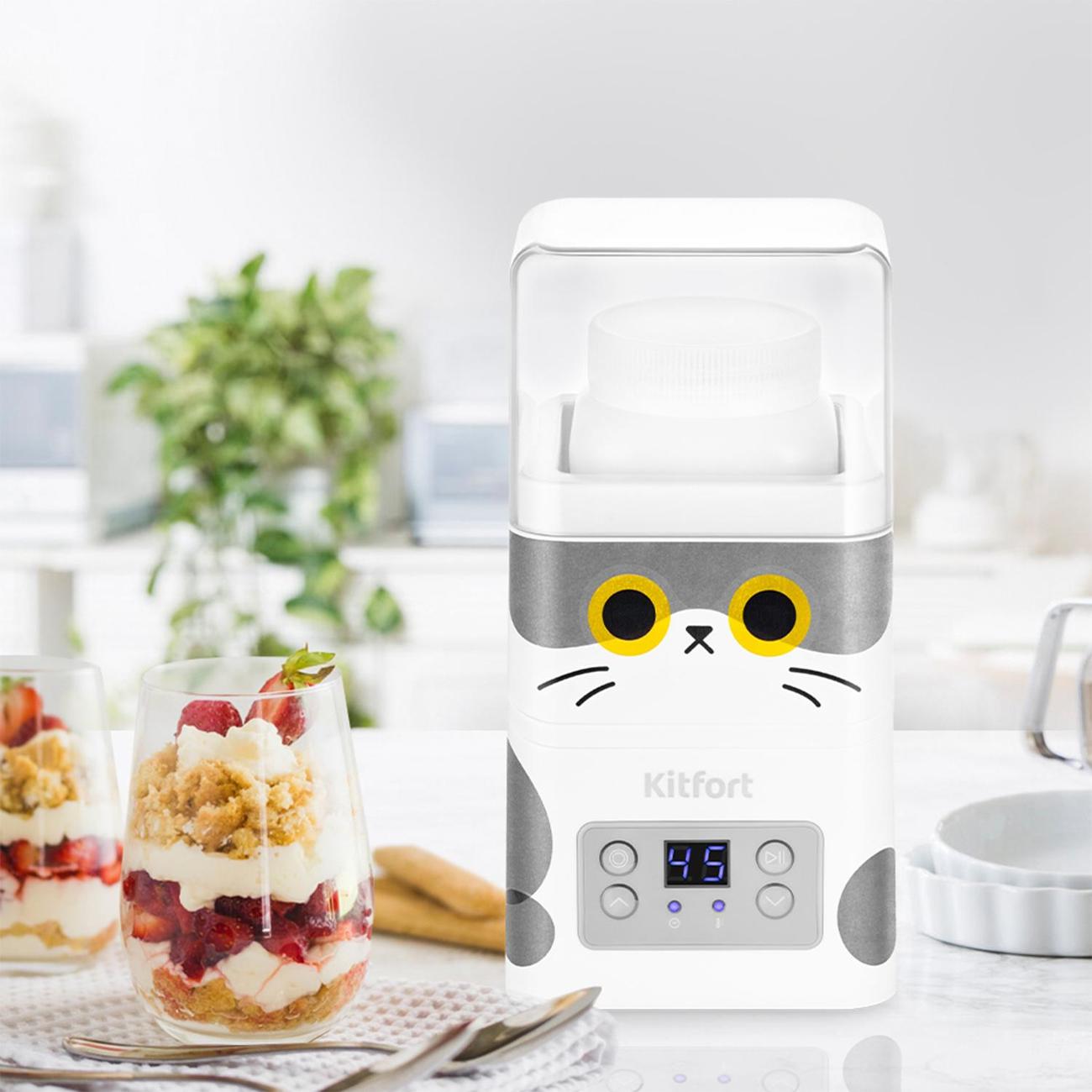 Йогуртница Kitfort КТ-4065 оснащена пластиковой баночкой 450 мл с крышкой. Модель предназначена для приготовления питьевого йогурта, сметаны, кефира и десертов. Система управления позволяет установить температуру в диапазоне от 20°C до 65°C и настроить время от 1 до 48 часов с помощью таймера. Пластиковый корпус дополнен индикаторами включения и выбранного режима, устойчивость обеспечивают прорезиненные ножки. Для соединения с розеткой предусмотрен сетевой шнур 1 м. Размеры — 22х11,3х11,3 см, вес — 0,61 кг.